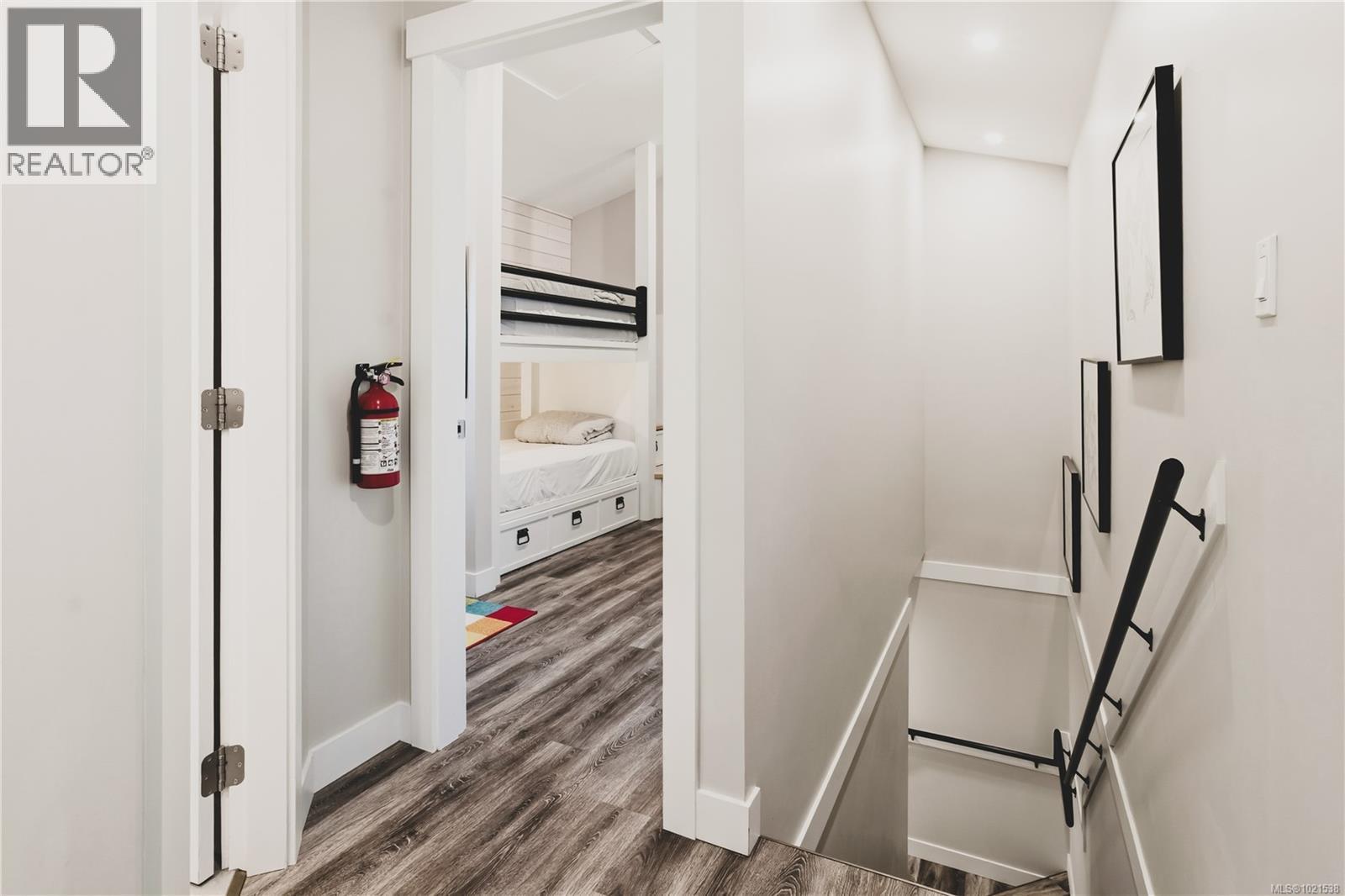 This beautifully designed modular home constructed by award-winning Muchalat Group in Comox, offers modern comfort and West Coast charm. Just a short walk to Terrace and Little Beaches, the Wild Pacific Trail, and Amphitrite Point Lighthouse, it’s perfectly located for peaceful getaways and outdoor adventure. The main floor features a bright living area with fireplace, chaise lounge, dining area, well-stocked kitchen, closeted Samsung washer & dryer and 3-piece bath with in-floor heating. A private back deck includes a BBQ and outdoor shower with privacy screen for rinsing off after beach days. Upstairs features two bedrooms and a gorgeous, full, in-floor heated Master bath. A Juliette balcony invites natural light into the Master bedroom. The second bedroom has custom bunkbeds and a trundle, ideal for kids and/or adults. Zoned for nightly rentals, this property can be your personal retreat or an income generator, with summer rates around $450/night. Inquire for a full info package. (id:61201)