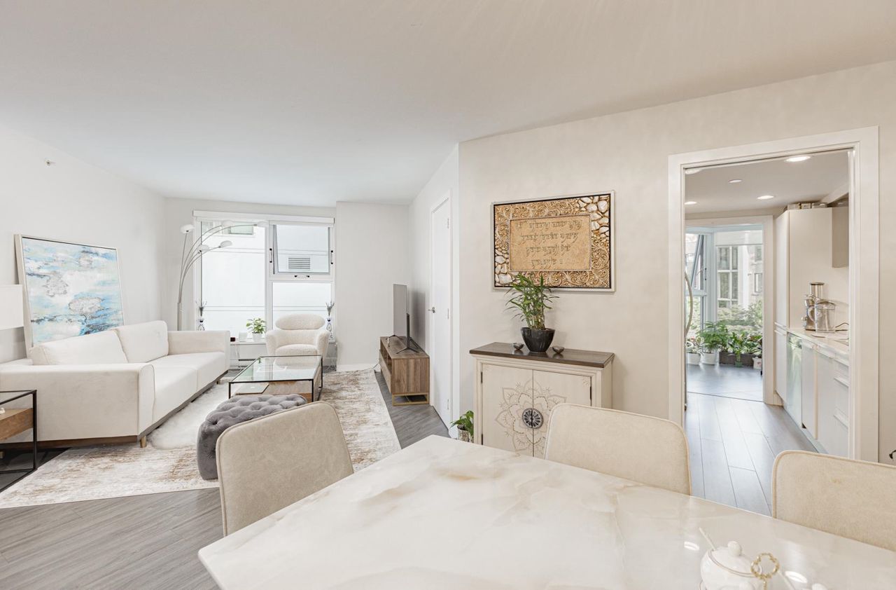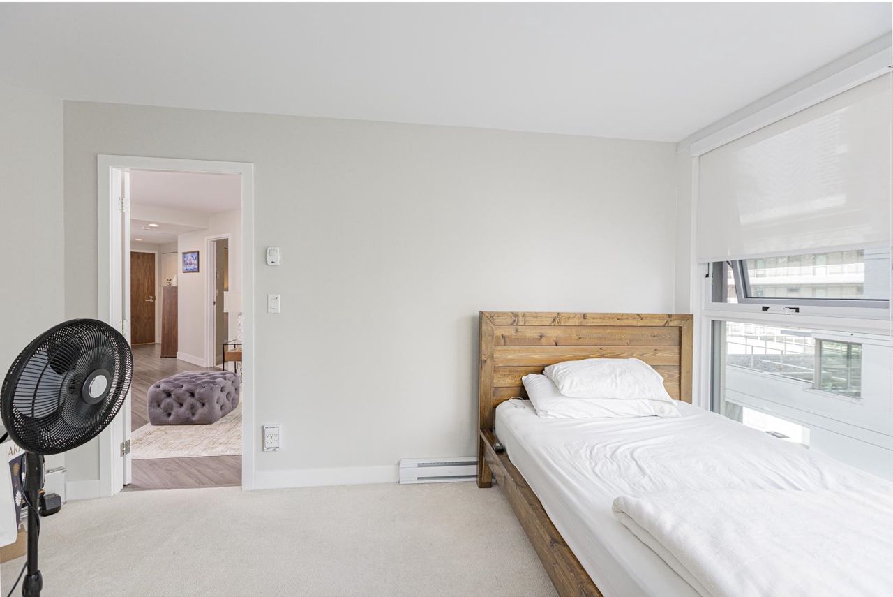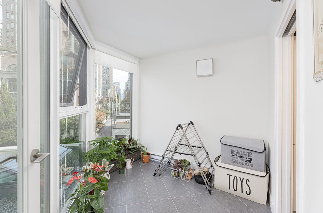 Welcome to Pacific Point 2 in Yaletown. Thoroughly revamped by Bosa in 2013. This contemporary and well-kept 2bed1bath+solarium/den (3rd bedroom alert!) corner unit boasts a split bedroom layout for added privacy, floor to ceiling windows, and a generous living & dining space. A chic galley kitchen comes with premium s/s appliances, quartz countertop, & Italian-made cabinets for culinary joy. Relish the laminated wood floors in main spaces, soft carpet in bedrooms, & polished bathroom tiles with a tub. Utilize the bright solarium for work/storage/kids’ zone. Amenities: pool, hot tub, sauna, lounge, gym, & concierge. In suite stacked laundry, 1parking & 1locker included. Walk to Yaletown's chic boutiques & eateries, skytrain, David Lam Park, & the Sea Wall. Call now!
