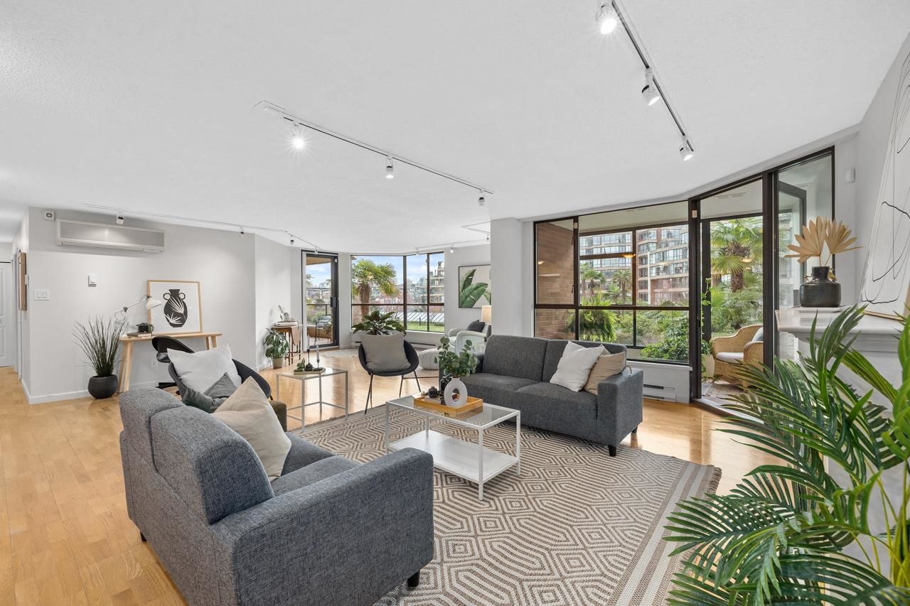 ESTATE SALE! Great opportunity for a savvy buyer! Light-filled rare 4-bedroom suite on FREEHOLD land in False Creek, steps to Grandville Island, the Marina & Seawall. So many possibilities in this beautiful one level, SE facing, close to 2400 SF home. Buy and hold or renovate. Property has 2 titles. Check out the floor plan! Lots of huge, open living spaces, 2 primary bedrooms w/ ensuites at opposite ends of the house sized condo. Every room opens to a balcony or one of the solariums that face a beautiful, quiet courtyard full of lush greenery & view of the Granville bridge. Lots of building amenities: concierge, pool, hot tub, squash ct, gym, plus all Grandville Island has to offer! AC unit, insuite laundry, tons of insuite storage, 2 STORAGE LOCKERS + 2 PARKING.