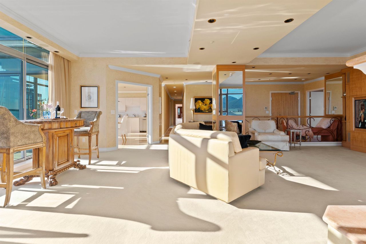 Live right at Stanley Park. Own this World Class Penthouse located on Prestigious Bayshore Dr. Surrounded by so much Natural Beauty & the Most Spectacular Panoramic Protected OCEAN MTN VIEWS in Coal Harbour. Redesigned by Designer David Lockhart with Timeless European Elegance to ensure open living spaces flow seamlessly throughout. 3 Bedrms all en-suited with California Closets, 3 & 1/2 Bathrms & 5 Sunny Balconies equalling 3,000 sqft of indoor/outdoor spaces. MARBLE Crema Valencia Floors & Countertops. Stunning Millwork & Polished Venetian Plaster Walls, Crown Mouldings. Dream Home Essentials Include Gas FP, New Berber Carpets, Overheight 9'2" Celings, Dual Zoned Heat Pumps A/C, S/S appliances, Miele Hood Fan, NEW Bosch D/W, & 2 Wall Ovens. 24hr concierge, gym, sauna, 3 parking 1 locker