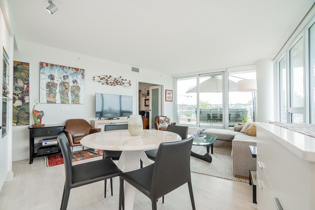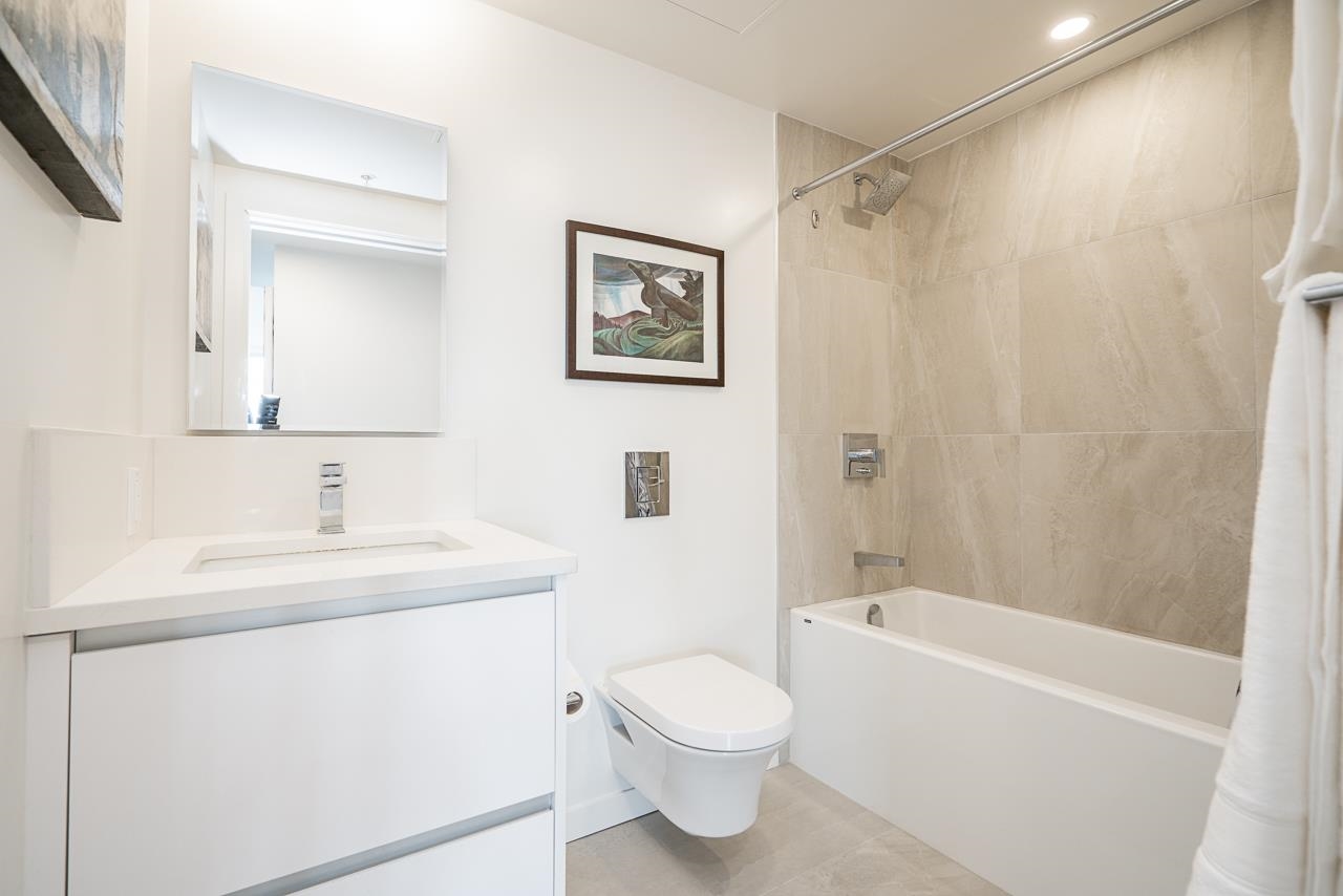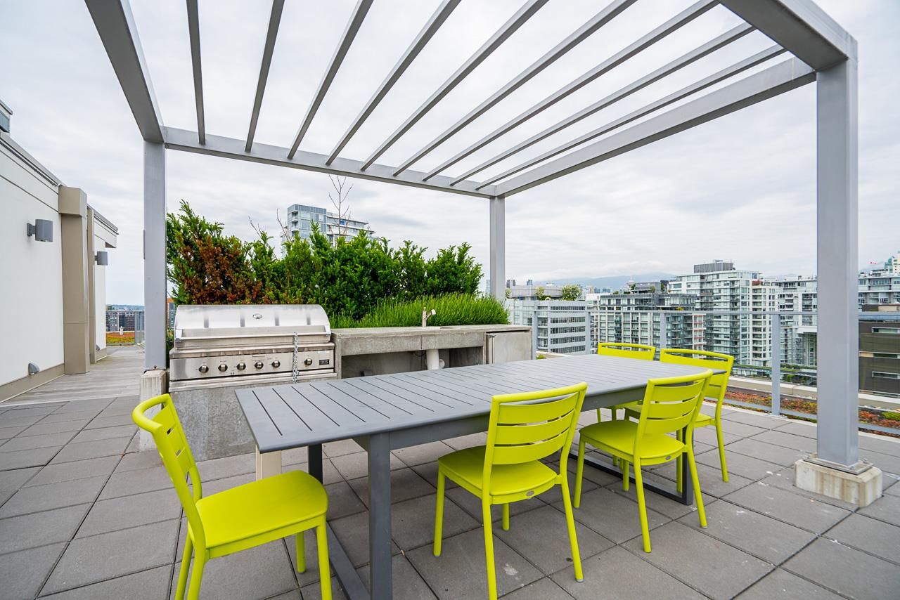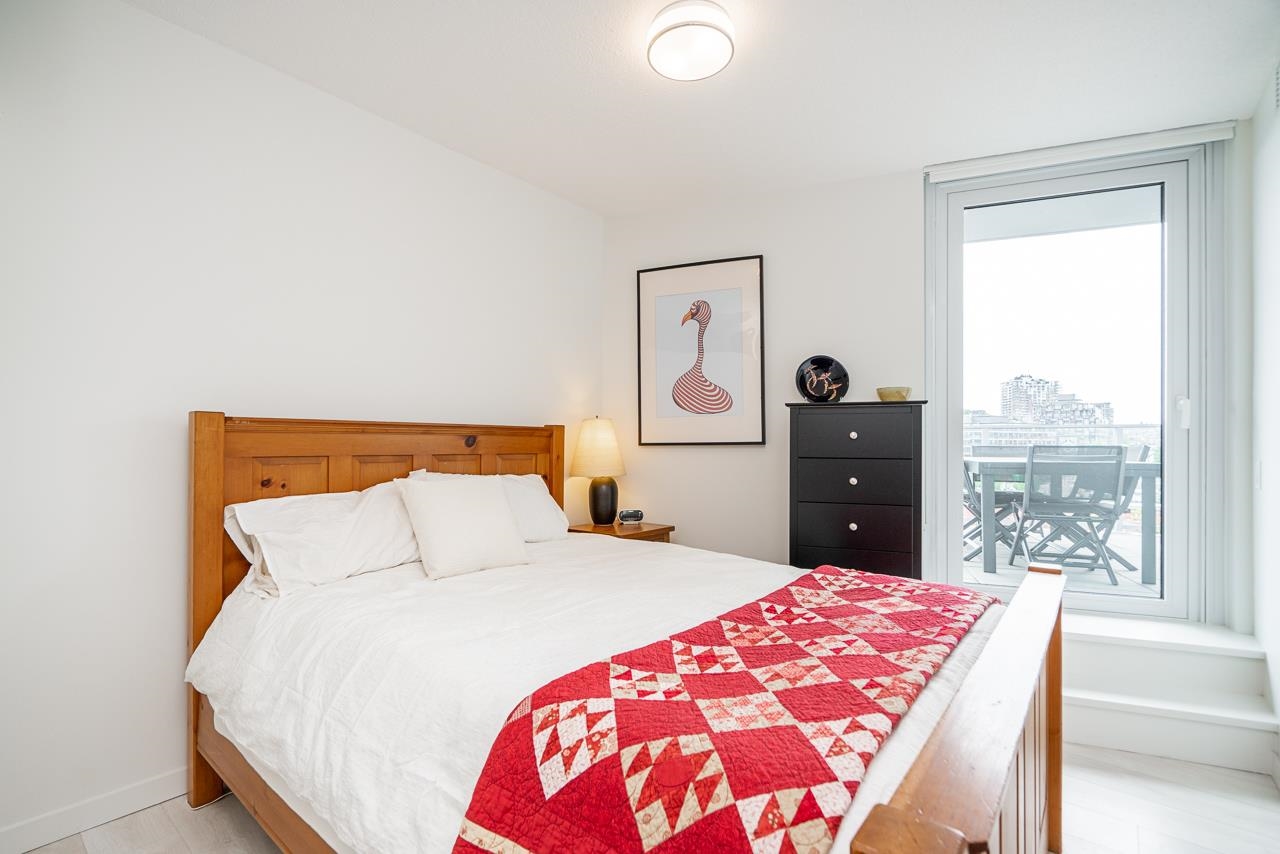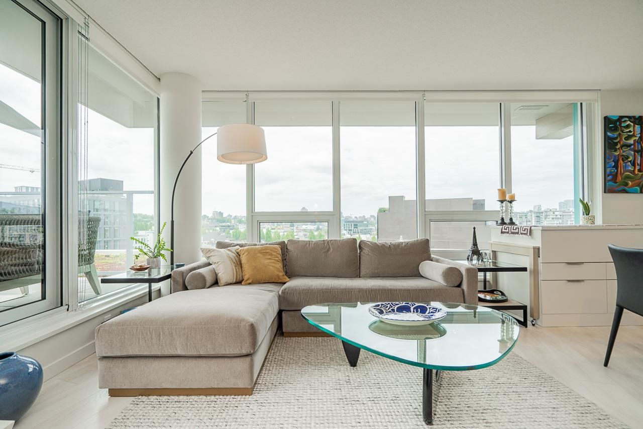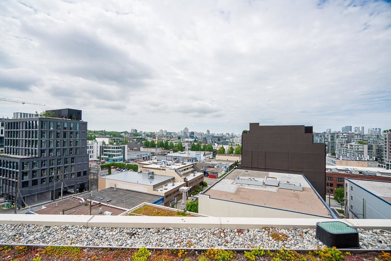 SECOND + MAIN! SUB-PENTHOUSE 2 Bed + 2 Bath + Den + interior storage room. This SOUTHWEST CORNER unit is one of the premier homes in the buildings. Featuring 180 degree south, west, and east facing VIEWs. RARE 280 square foot BALCONY. Luxury finishes including: custom European designed kitchen w/induction range top; bathrooms w/ premium fixtures; large floor to ceiling windows; wide plank hardwood flooring; custom bedroom storage; and A/C. 2 parking stalls. Building amenities include: rooftop terrace with great views, bbq area, urban rooftop gardens, fitness room, party room with full kitchen. Minutes walk to SkyTrain, False Creek, Olympic Village shops, restaurants, bars and seawall. 2-5-10 warranty. Short-term rental allowed. Superb location.
