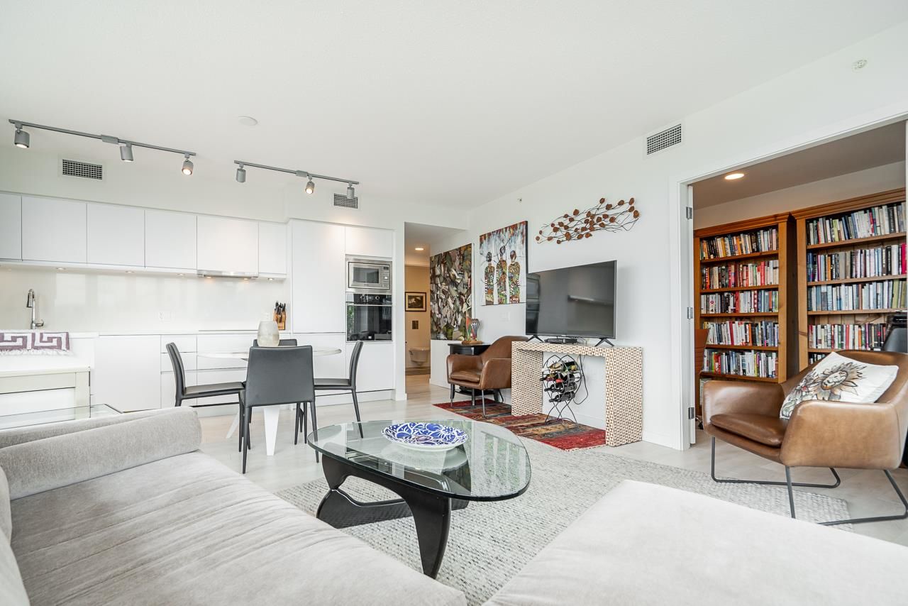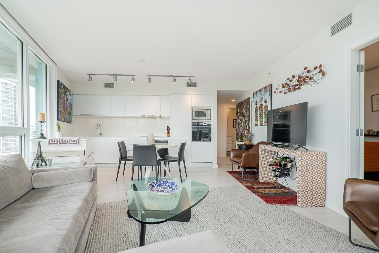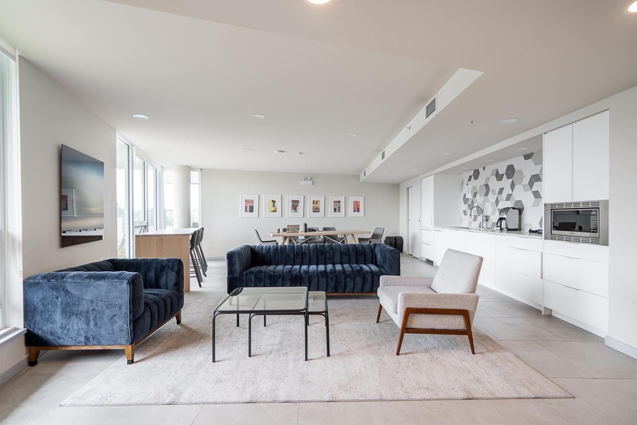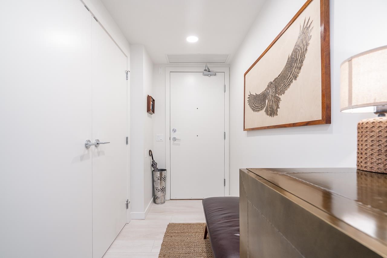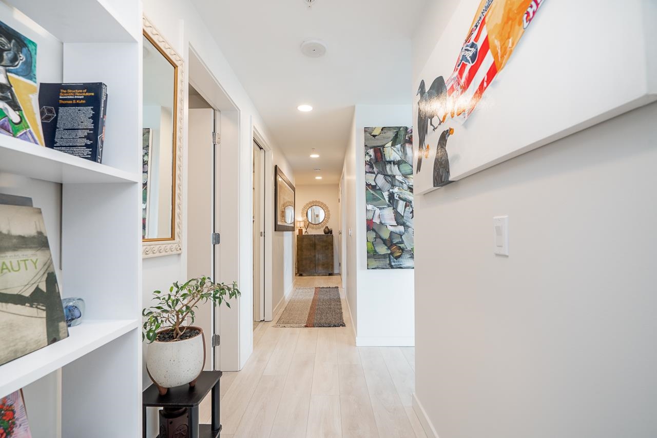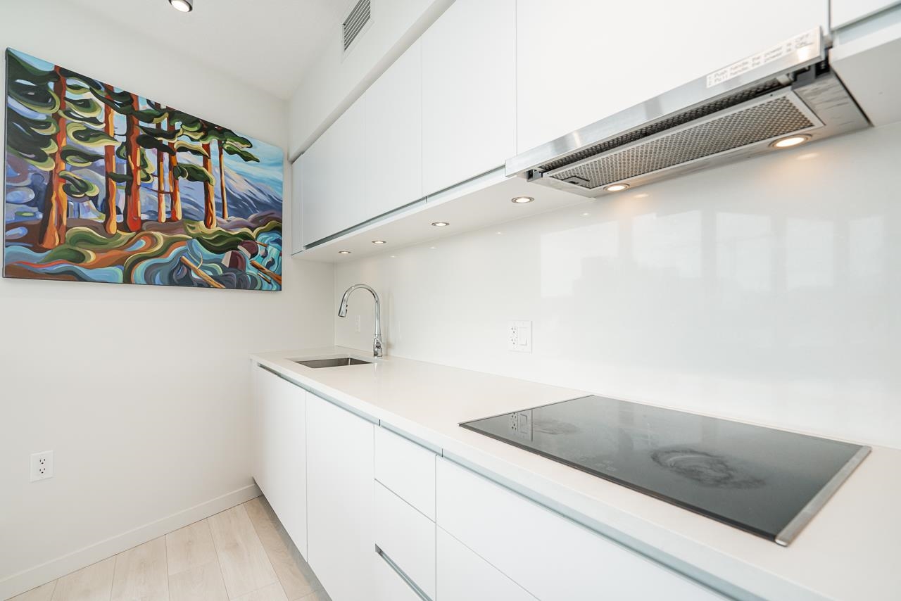 SECOND + MAIN! SUB-PENTHOUSE 2 Bed + 2 Bath + Den + interior storage room. This SOUTHWEST CORNER unit is one of the premier homes in the buildings. Featuring 180 degree south, west, and east facing VIEWs. RARE 280 square foot BALCONY. Luxury finishes including: custom European designed kitchen w/induction range top; bathrooms w/ premium fixtures; large floor to ceiling windows; wide plank hardwood flooring; custom bedroom storage; and A/C. 2 parking stalls. Building amenities include: rooftop terrace with great views, bbq area, urban rooftop gardens, fitness room, party room with full kitchen. Minutes walk to SkyTrain, False Creek, Olympic Village shops, restaurants, bars and seawall. 2-5-10 warranty. Short-term rental allowed. Superb location.