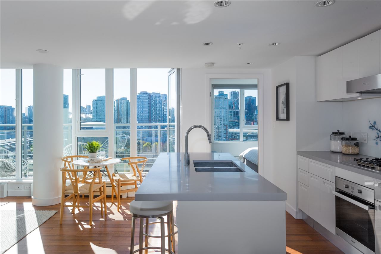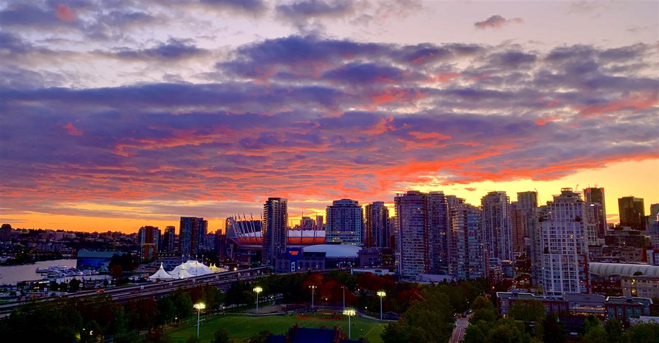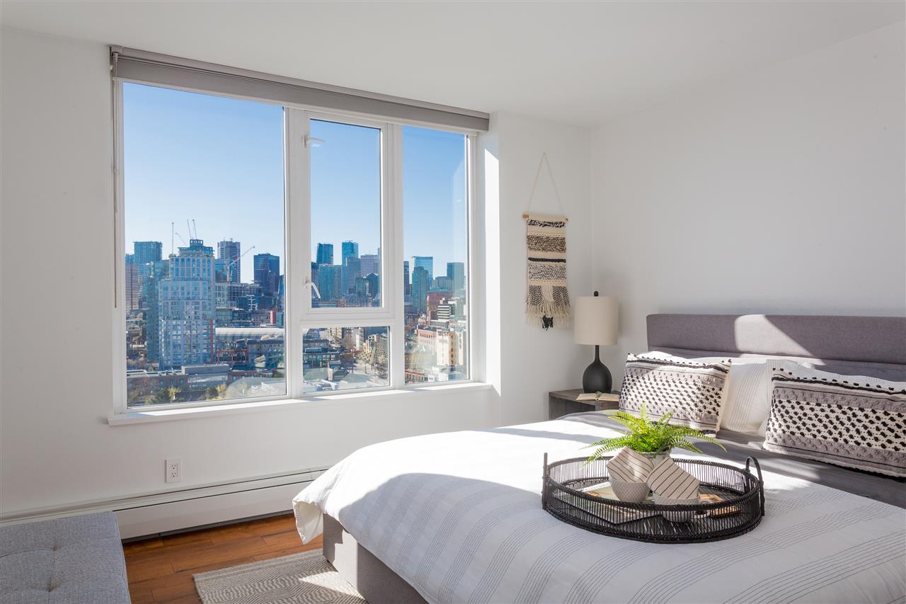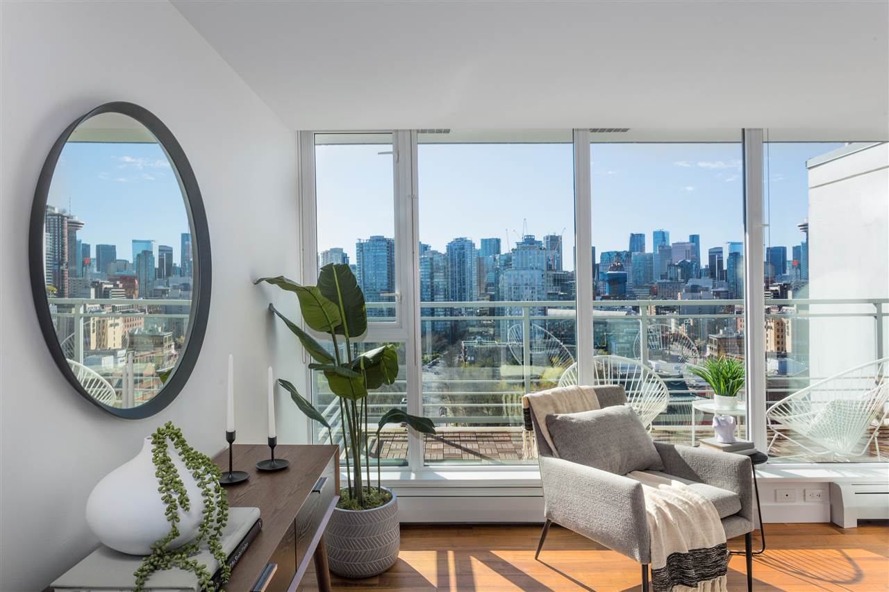 VIEW property at Westbank's 188 Keefer St. This rarely available SUBPH 2Bed/2 Bath open concept corner condo offers a unique floorplan and unobstructed views from every part of the home. The high end kitchen features Miele integrated appliances and a gas range. From the main living space and the 134sqft Patio you have a panoramic outlook of False Creek, Downtown, Chinatown, the mountains and water. The generous sized bedrooms are on opposite sides of the condo for maximum privacy and the primary features a walk through closet and double sink ensuite. This pet and rental friendly building is a 97 Walk Score to the Skytrain, Seawall, Rogers Arena and many fabulous restaurants. Includes 1 pkg spot and 2 oversized storage lockers. Strata fee includes heat. Call now as this one won't last!