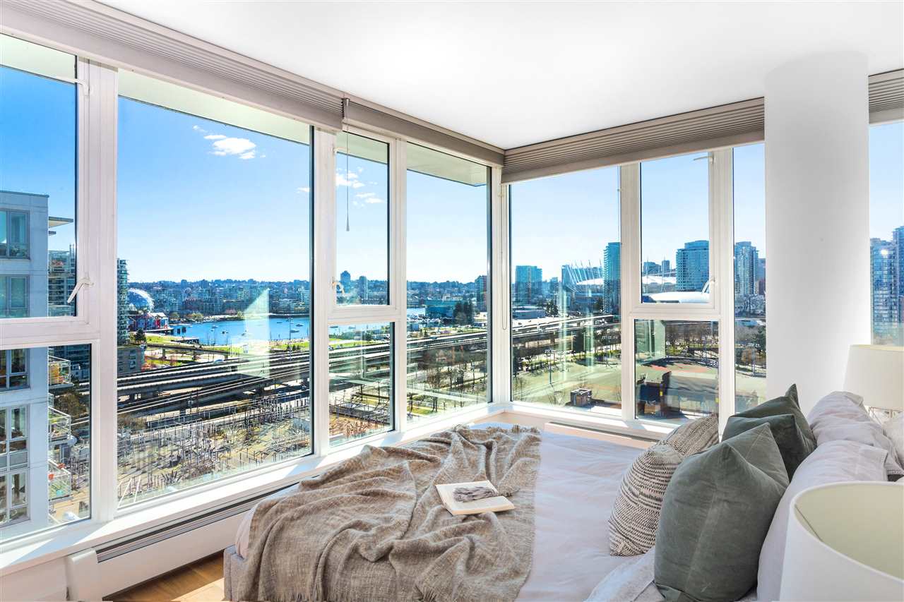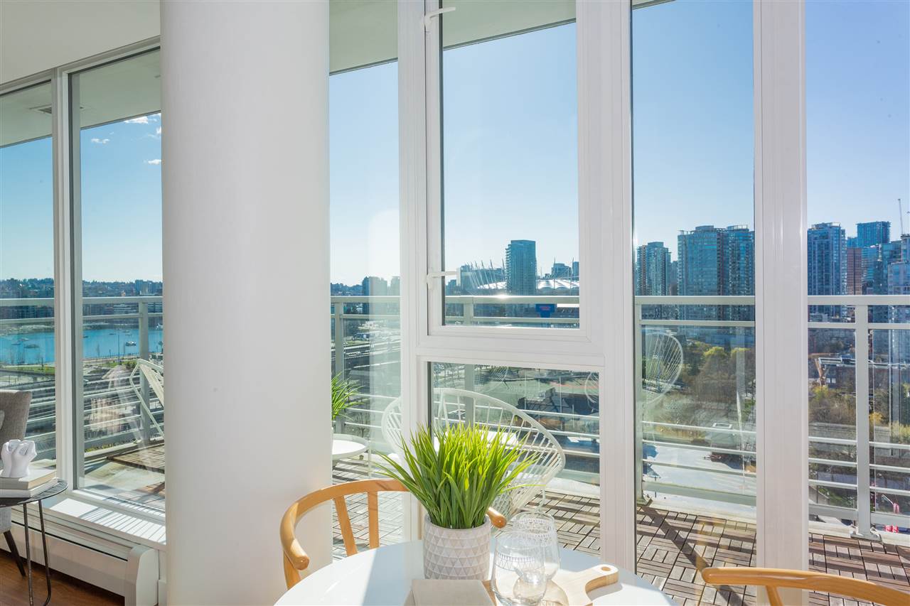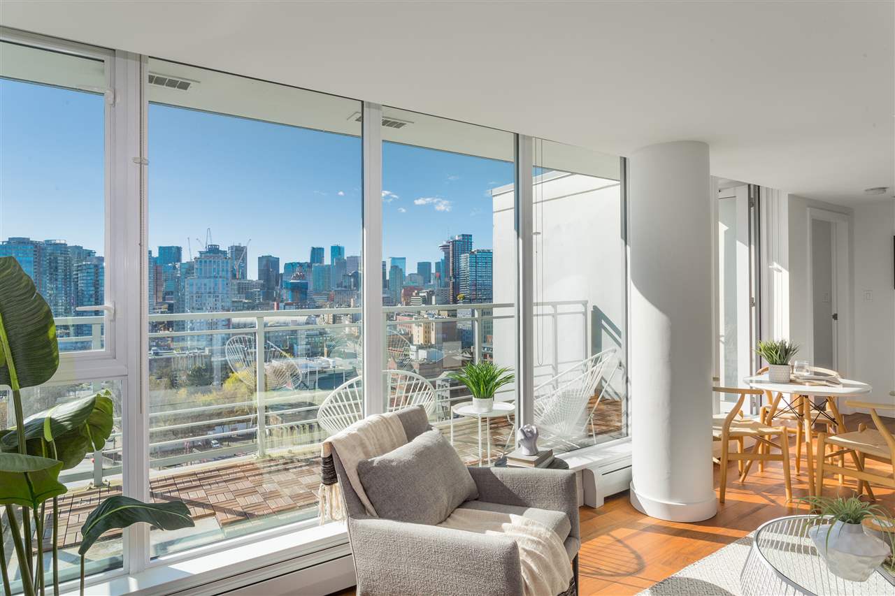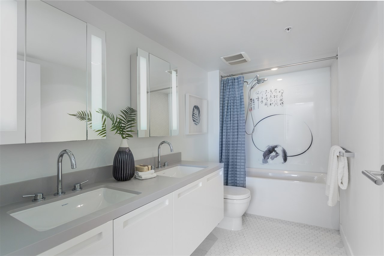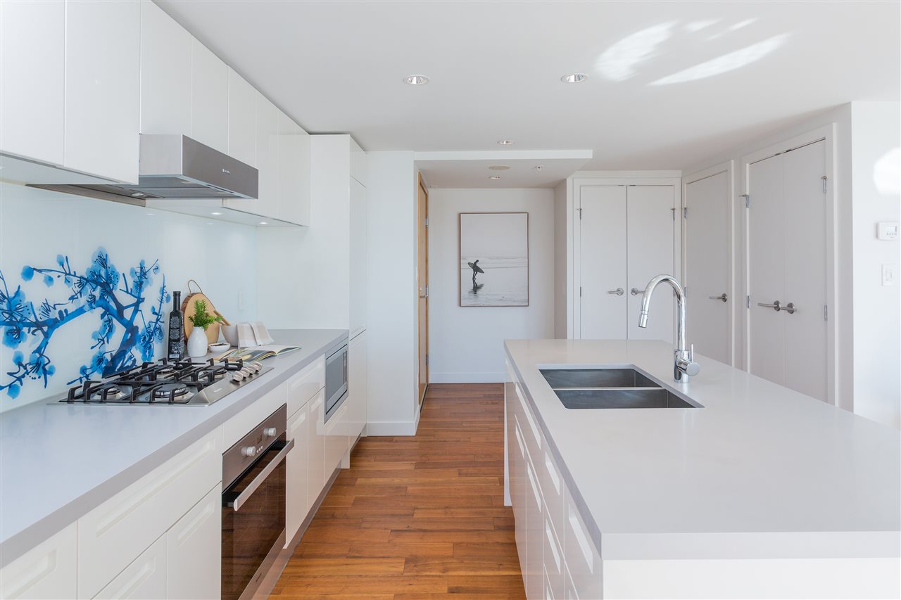 VIEW property at Westbank's 188 Keefer St. This rarely available SUBPH 2Bed/2 Bath open concept corner condo offers a unique floorplan and unobstructed views from every part of the home. The high end kitchen features Miele integrated appliances and a gas range. From the main living space and the 134sqft Patio you have a panoramic outlook of False Creek, Downtown, Chinatown, the mountains and water. The generous sized bedrooms are on opposite sides of the condo for maximum privacy and the primary features a walk through closet and double sink ensuite. This pet and rental friendly building is a 97 Walk Score to the Skytrain, Seawall, Rogers Arena and many fabulous restaurants. Includes 1 pkg spot and 2 oversized storage lockers. Strata fee includes heat. Call now as this one won't last!