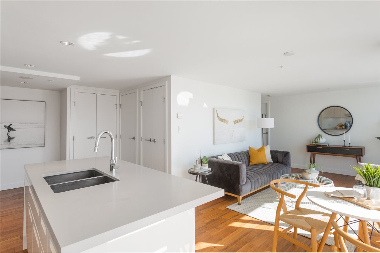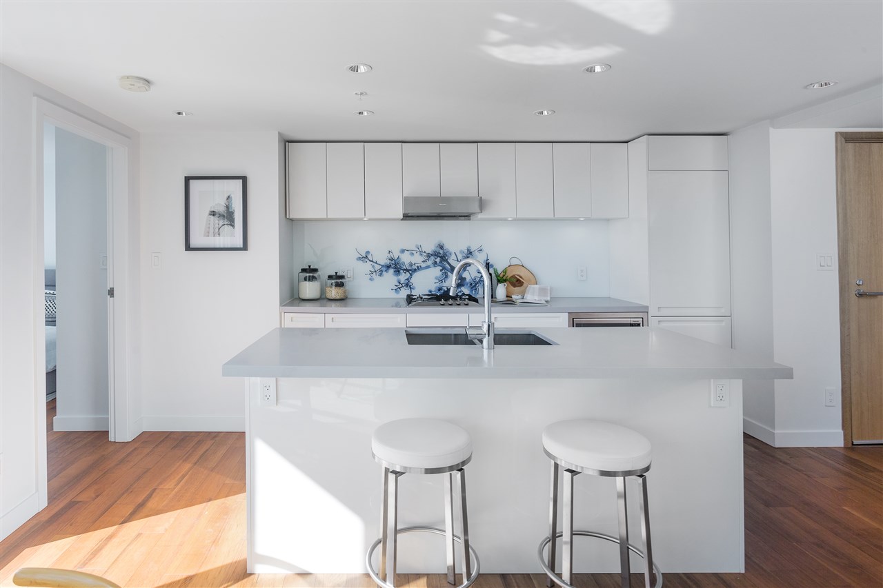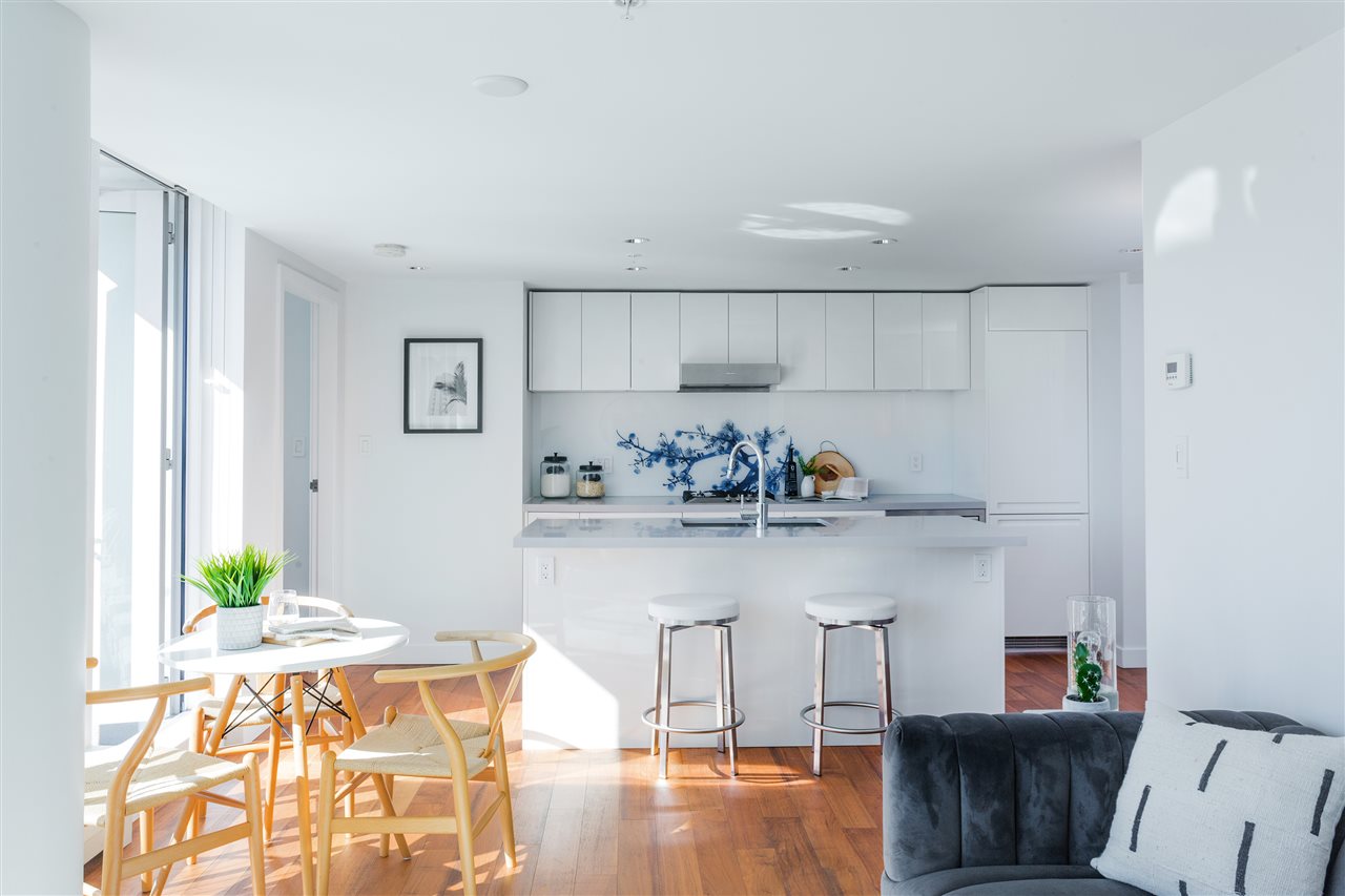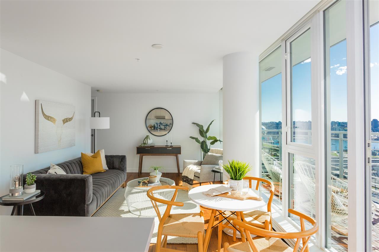 VIEW property at Westbank's 188 Keefer St. This rarely available SUBPH 2Bed/2 Bath open concept corner condo offers a unique floorplan and unobstructed views from every part of the home. The high end kitchen features Miele integrated appliances and a gas range. From the main living space and the 134sqft Patio you have a panoramic outlook of False Creek, Downtown, Chinatown, the mountains and water. The generous sized bedrooms are on opposite sides of the condo for maximum privacy and the primary features a walk through closet and double sink ensuite. This pet and rental friendly building is a 97 Walk Score to the Skytrain, Seawall, Rogers Arena and many fabulous restaurants. Includes 1 pkg spot and 2 oversized storage lockers. Strata fee includes heat. Call now as this one won't last!