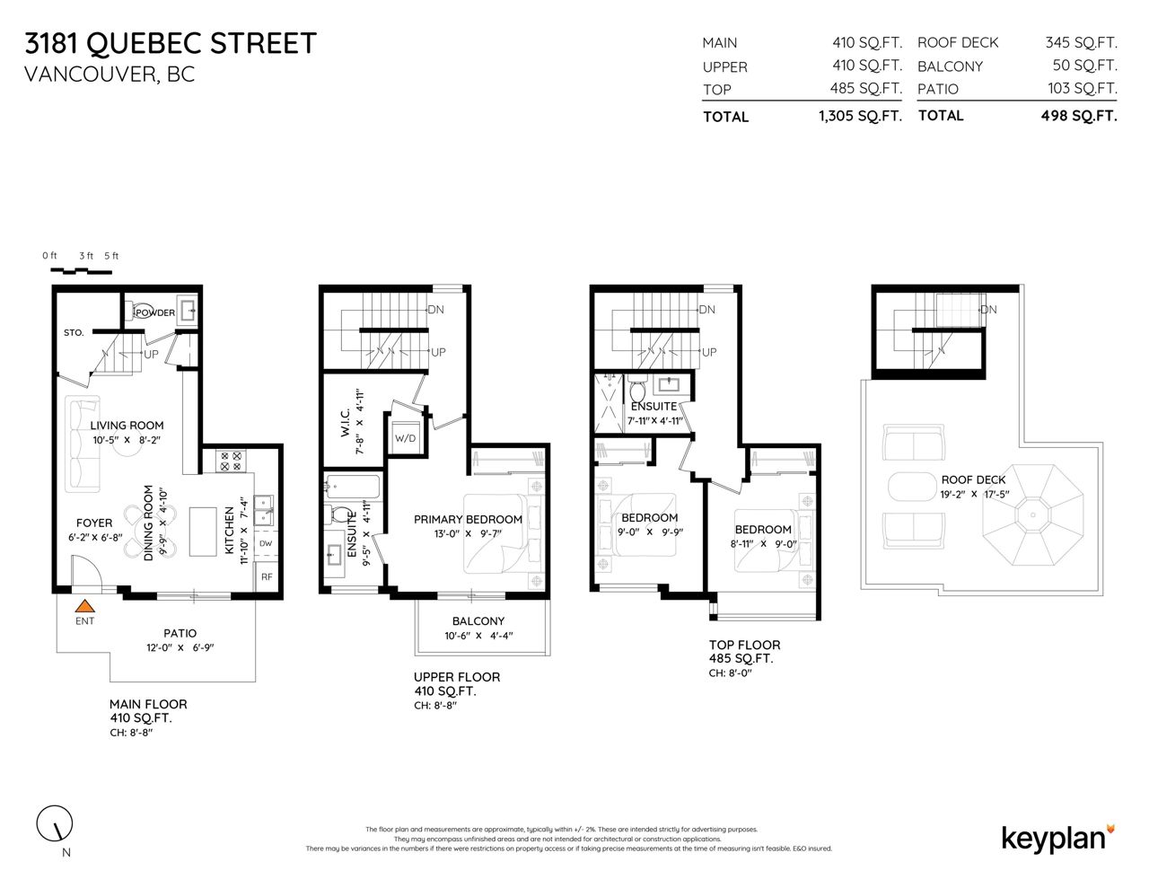 The perfect 3 bed townhome steps to fantastic Main Street. Featuring over height ceilings and incredible outdoor space. Outdoor patio greets you as you enter the space and then an open concept, kitchen, living and dining room with a powder room on the main then upstairs and oversized primary bedroom with lovely en-suite and an extra big storage closet beside then go up another set of stairs and there’s two more generous sized bedrooms and then finally to the very top to enjoy a massive 345 sqft rooftop deck, urban oasis. This home has the most functional and family, friendly floor plan and beautiful finishings in the most sought-after neighborhood in the city. OPEN HOUSE CANCELLED