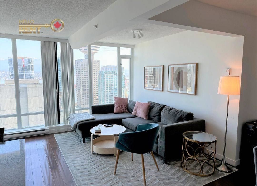 Avail Aug 1, 2025 Min 1 Year Term Furnished Only - No Exceptions Pets OK 1 Secure Underground Parking Incl Professionally Managed by Hello Rent The Hudson is perched atop Granville Skytrain Station and Pacific Center Mall, in the heart of downtown Vancouver. Walk into your spacious, furnished, open concept home. This 26th floor suite boasts floor-to-ceiling windows, offering stunning mountain and water views. Amenities include concierge, fitness centre, lounge, meeting rooms, two gardens, and secure underground parking. Near dining, theatre, Robson shopping, UBC Robson Square, and library. Direct SkyTrain access. The Hudson is a lifestyle defined by energy, elegance, and ease. Tenant Insurance required at move-in. Move-In Fee $200 paid to Strata BCS2044.