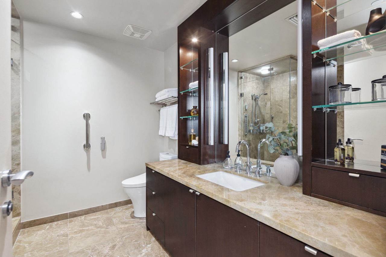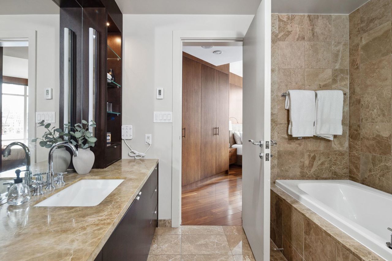 Step out of your private elevator into this stunning Southeast-facing home with breathtaking False Creek views. The open-concept living and dining areas are perfect for entertaining family and friends. Each spacious bedroom features its own ensuite bathroom, with the primary suite offering custom wood-paneled hidden closets leading to a luxurious ensuite with a deep soaker tub and separate shower. The bright office space offers inspiring views and room for a second TV area. Enjoy easy access to the seawall for your morning walk or jog, with grocery stores and restaurants within walking distance. This exclusive boutique building offers full access to Icon’s amenities, including concierge service, gym, lap pool, sauna, and theater.
