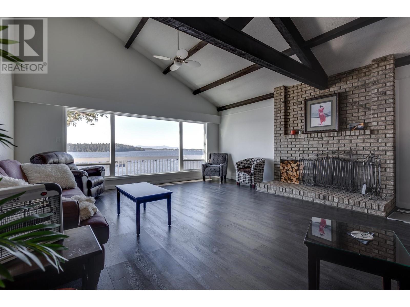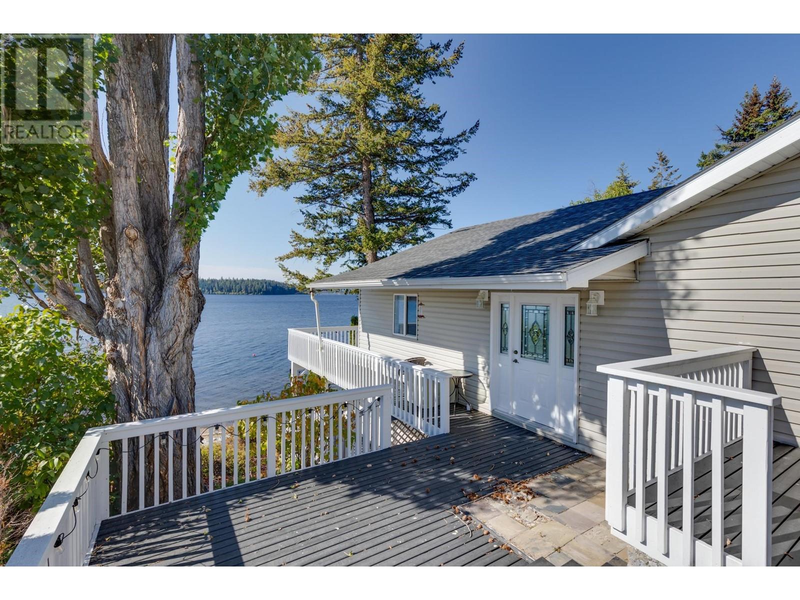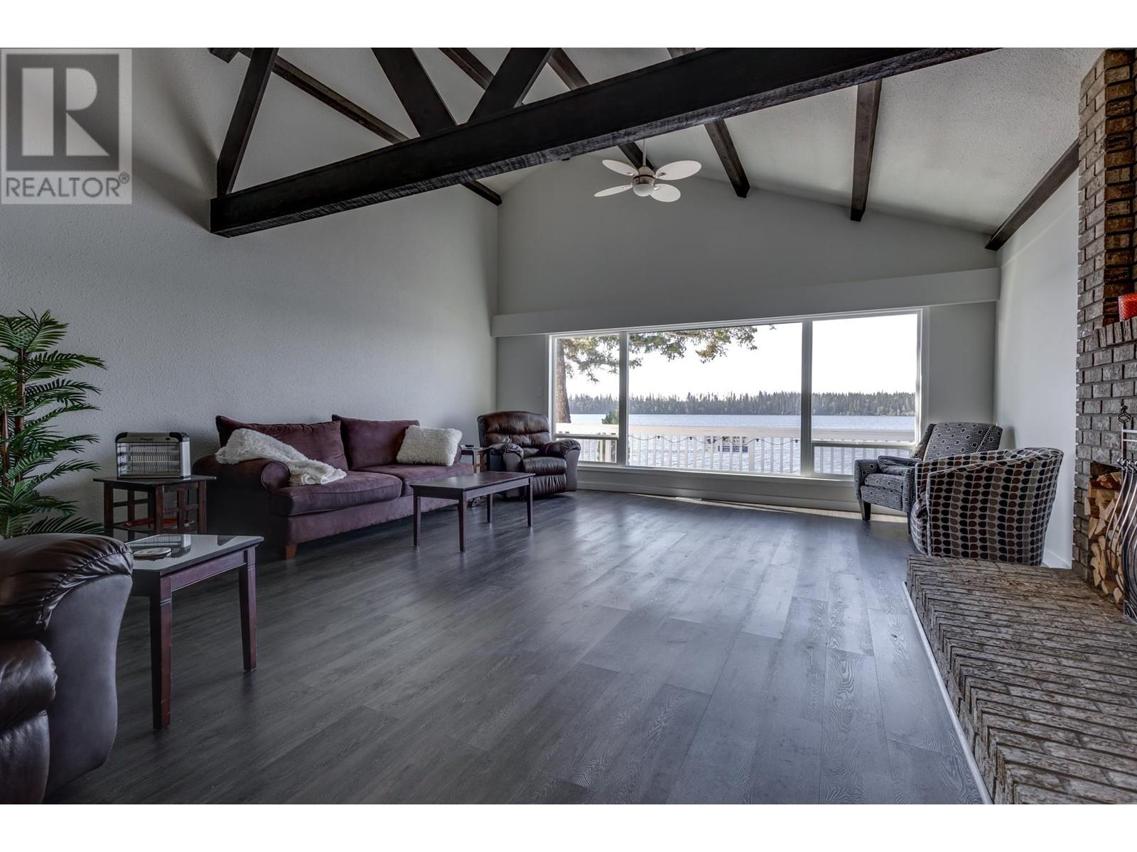 Fabulous lake front property within a well maintained & managed gated community at Cluculz Lake. This is the only home/cabin in this community. Located on one of the best lots on the lake with a full southern exposure. This home has lots of updating and is ready for new owners. Two bedrooms on the main floor. One more in the fully finished basement. Bright modern kitchen with white cabinetry and adjoining eating area. Awesome dining area overlooking the massive living room complete with a wood fireplace, amazing post & beam vaulted ceiling and a million dollar view. Monthly strata fee of $100 per month, that includes sewer, water, firewood, boat launch & boat moorage. All furniture and household items are included in the sale. (id:22211)