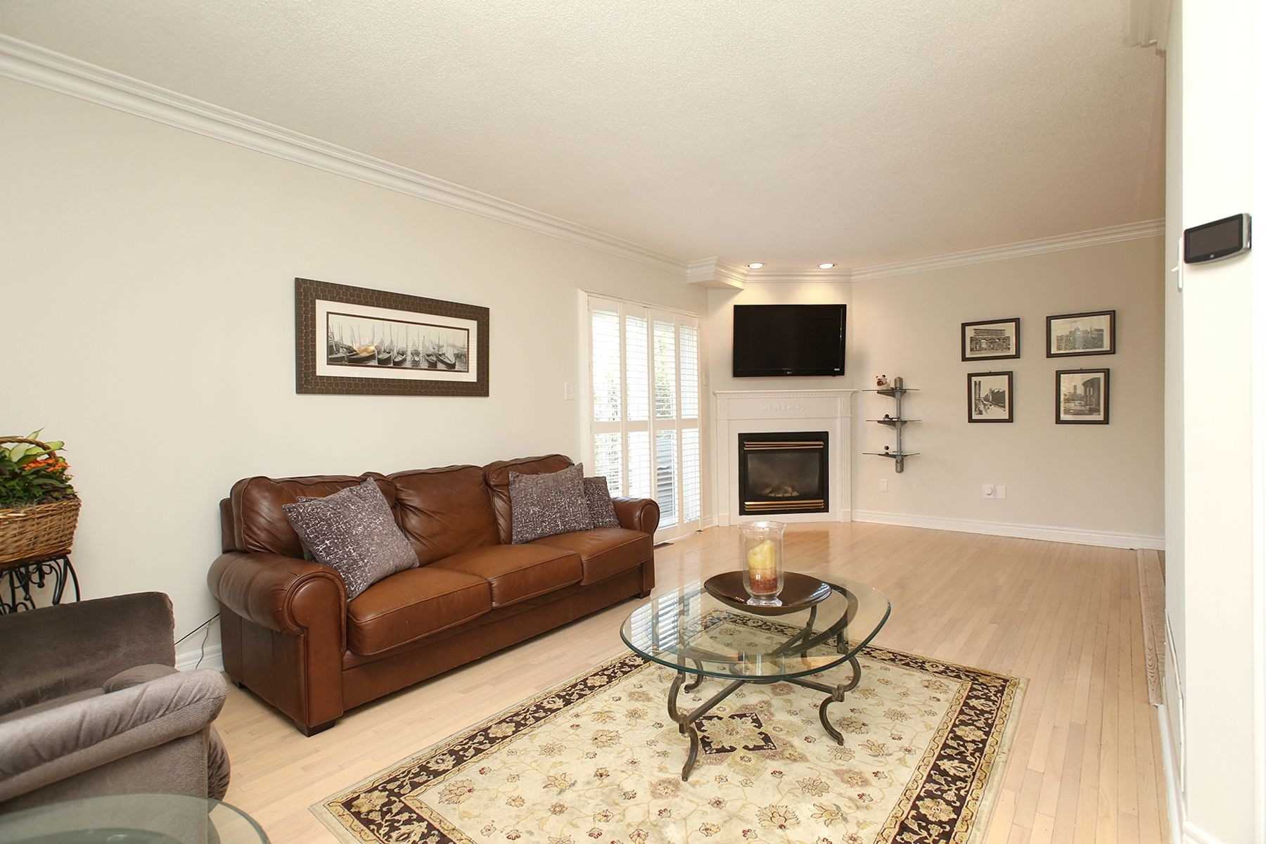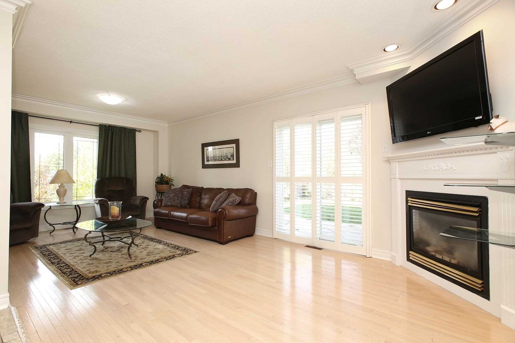 Gas Fireplace W/O To Yard Large Window