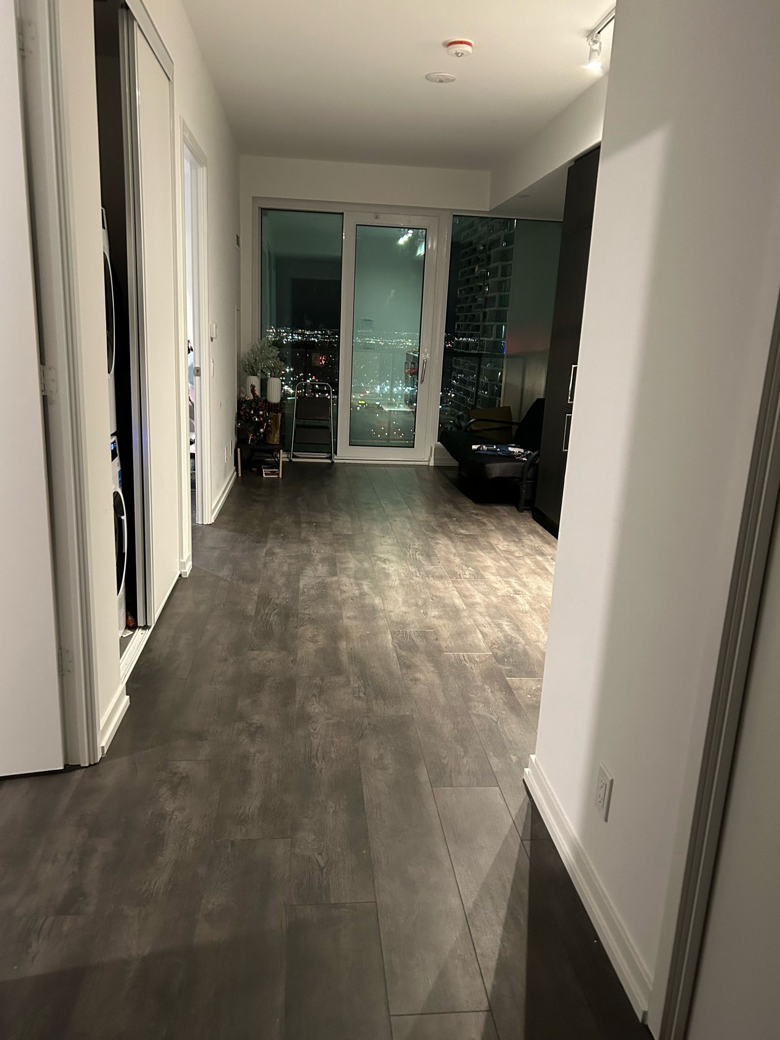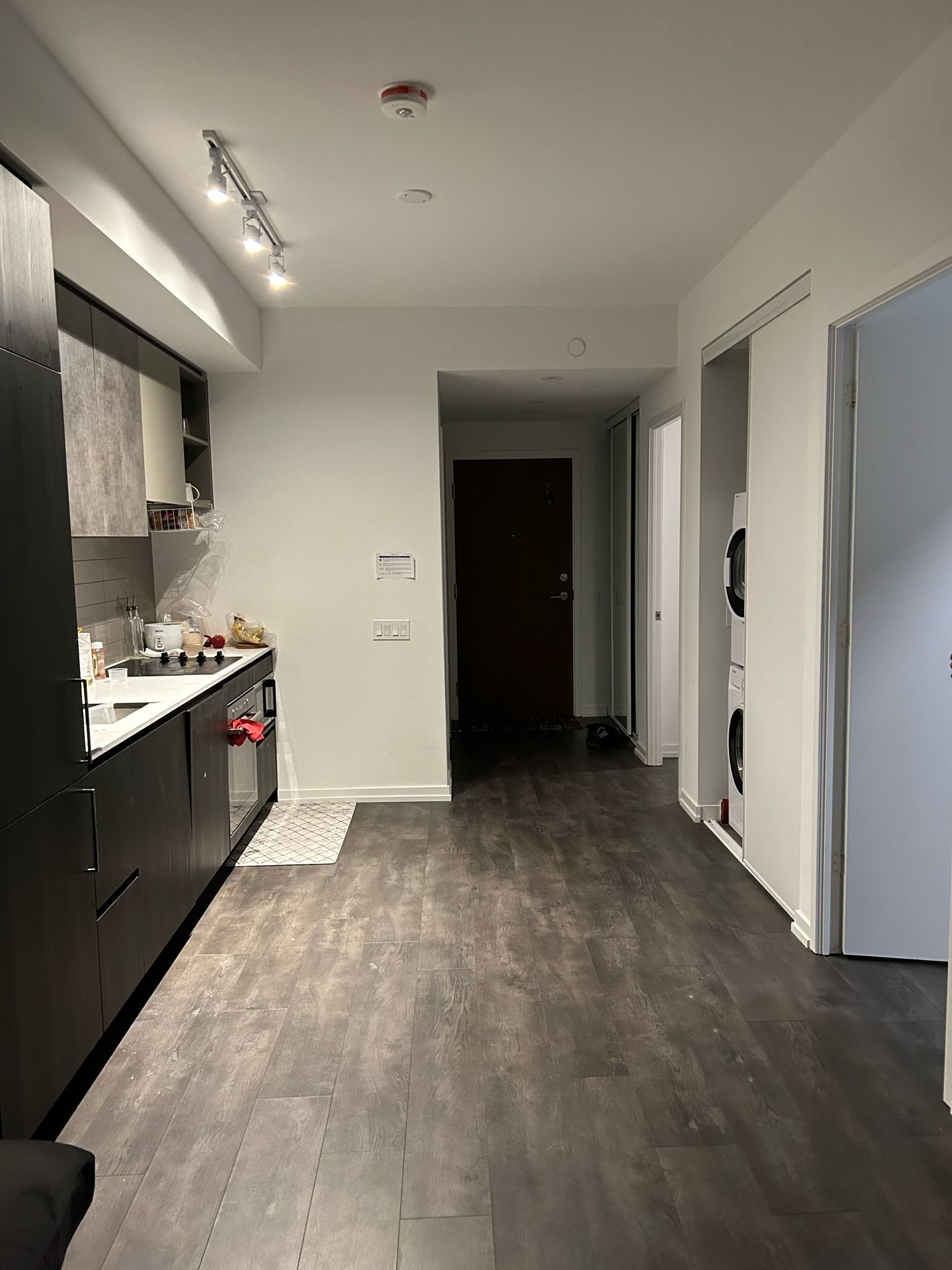 Discover a spacious 1+Den suite that mirrors a 2-bedroom home, complete with a flexible swing door for a home office or second bedroom. The oversized balcony offers panoramic views, enhancing the integrated modern kitchen and lofty 9-foot ceilings. Positioned for unmatched convenience, enjoy direct access to the VMC subway, with immediate proximity to major transit options and Hwy 400. Just minutes from York University, dining, Vaughan Mills Mall, and essential services. This suite is part of a building featuring 24/7 concierge, social event spaces, extensive fitness facilities including a running track, cardio zone, yoga spaces, and sports courts. The highlight includes a rooftop pool and courtyard for outdoor enjoyment. Perfect for those seeking a blend of sophistication and convenience in a vibrant location.