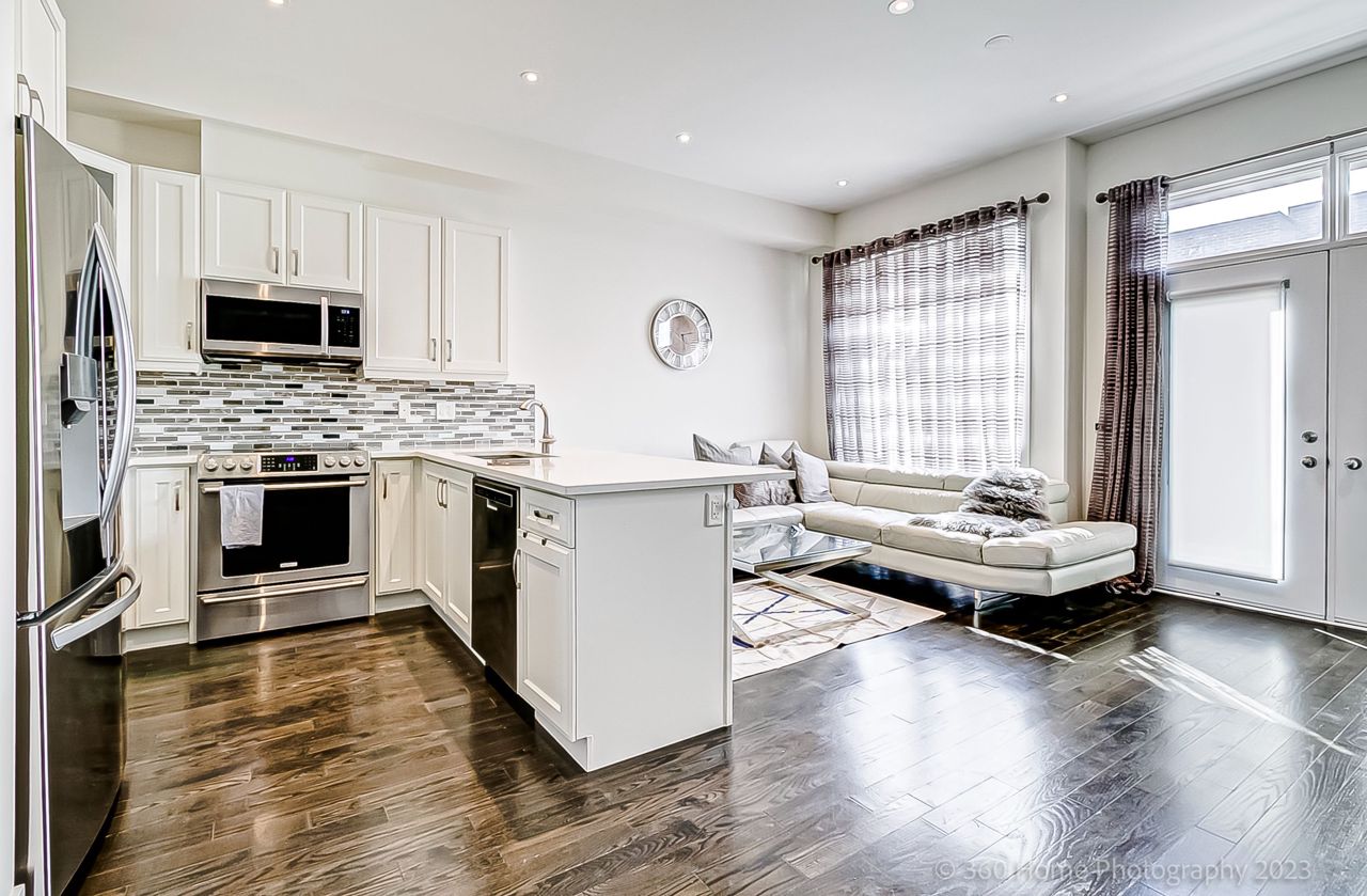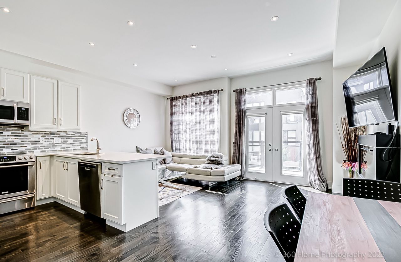 Beautiful Freehold Townhouse in Highly Desirable Patterson Community.Upgraded Interior Railing. 3+1 Bdrm.10ft Ceiling on main FL,9ft Ceiling & Lower FL. Den May be used as 4th Bed Room/Office/Playroom/Exericise Room.Step to Public Transit.Pot lights Thru-out.Open Concept Living,Dinning Room.S/S LG Fridge,Stove,Dishwasher, Samsung Microwave,Washer/Dryer,All Elfs,Blinds