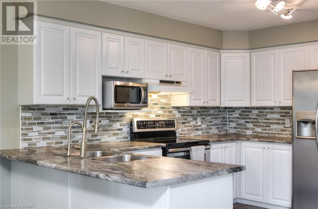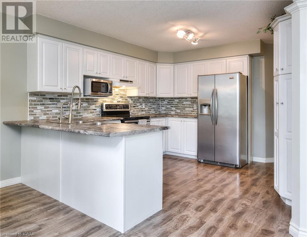 A full-size family home in a prestigious Waterloo location, with full-size features! Set on a quiet, family-friendly court in Eastbridge, all four bedrooms and four bathrooms of 467 Acadia Court offer the space and flexibility youll need to open your familys next chapter. An open-concept main floor ushers you through large principal living spaces filled with natural light, courtesy of oversized windows. The raised family room boasts soaring vaulted ceilings and a cozy fireplace, making it an ideal gathering point for family and friends. Three well-proportioned bedrooms occupy the upper level, including the primary suite complete with walk-in closet and ensuite bath. Meanwhile, a fully-finished walkout basement provides not only your usual recreation/leisure space (with a second fireplace of its own), but also an additional guest suite and an extra washroom. Loads of space for storage can be found down below, as well. Moving outside, an attached double garage and private drive offer plenty of room for parking, while the fully-fenced back yard with a spacious elevated deck will make an ideal venue for outdoor entertaining when the warm weather returns. Backing onto protected greenspace, therell be no rear neighbours to spoil your fun either! All of this is located mere minutes from the expressway at University Avenue, walking distance to schools and parks, less than 10 minutes from Uptown Waterloo and both universities, and handy to shopping at Conestoga Mall. (id:22211)