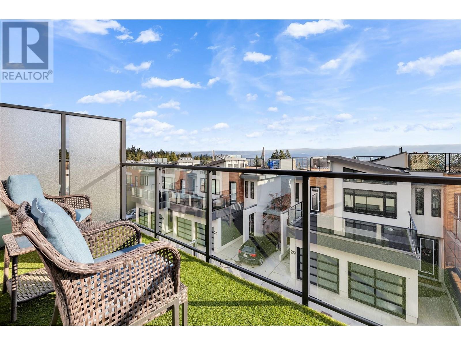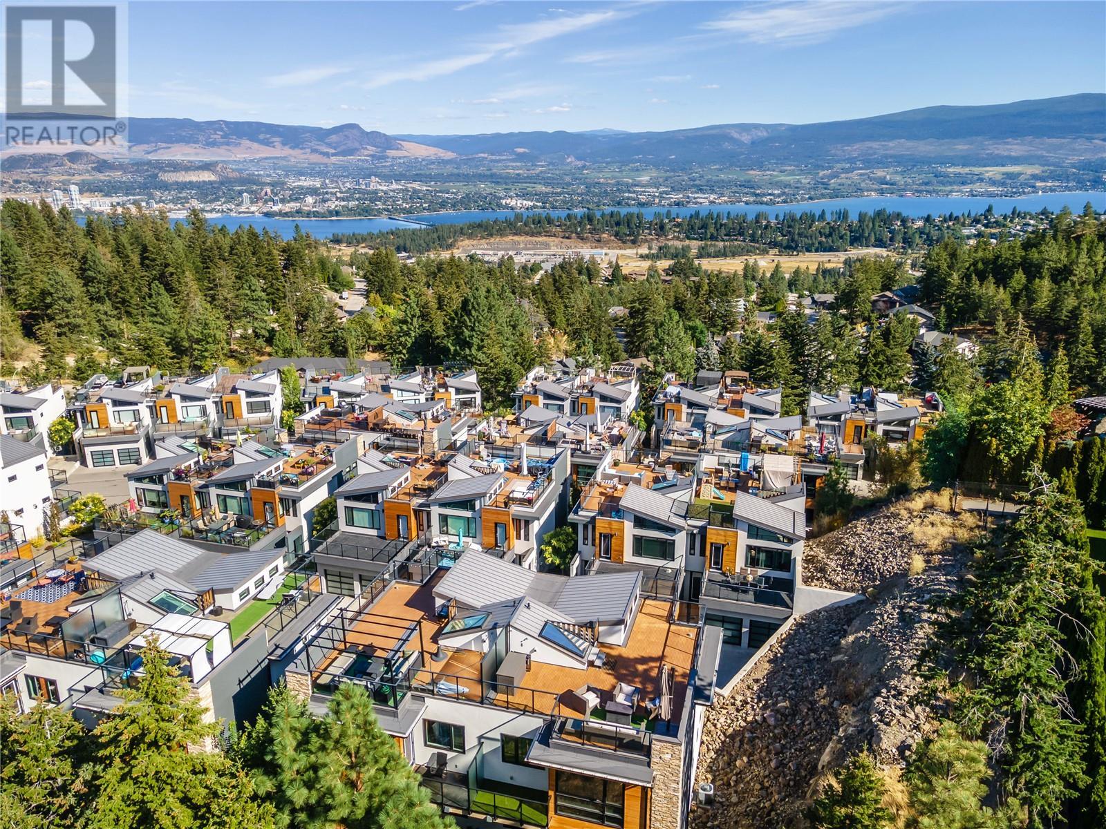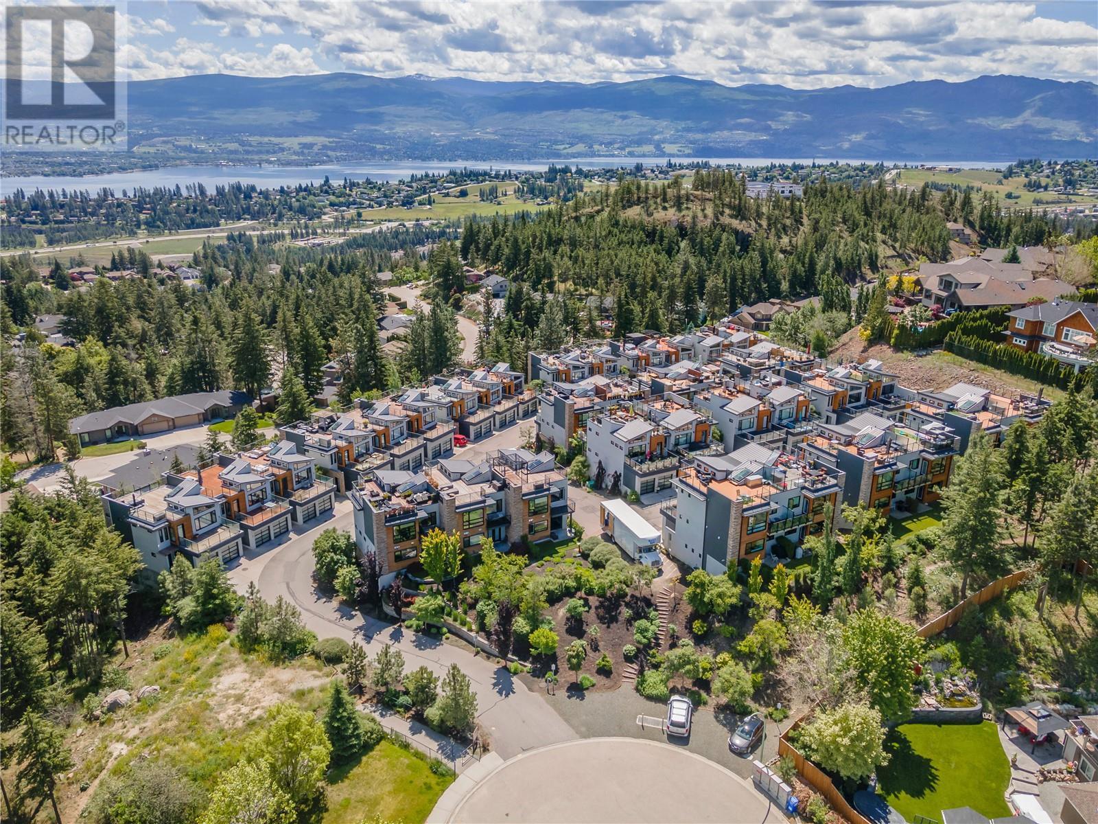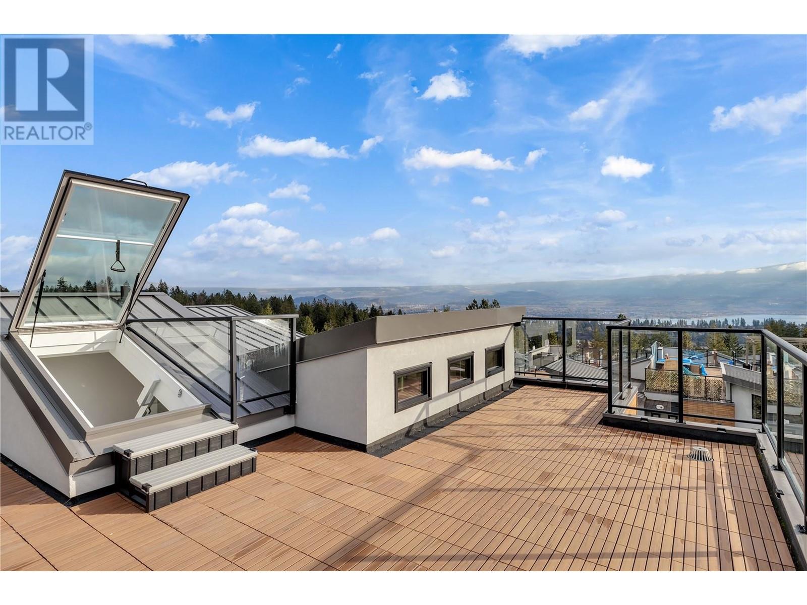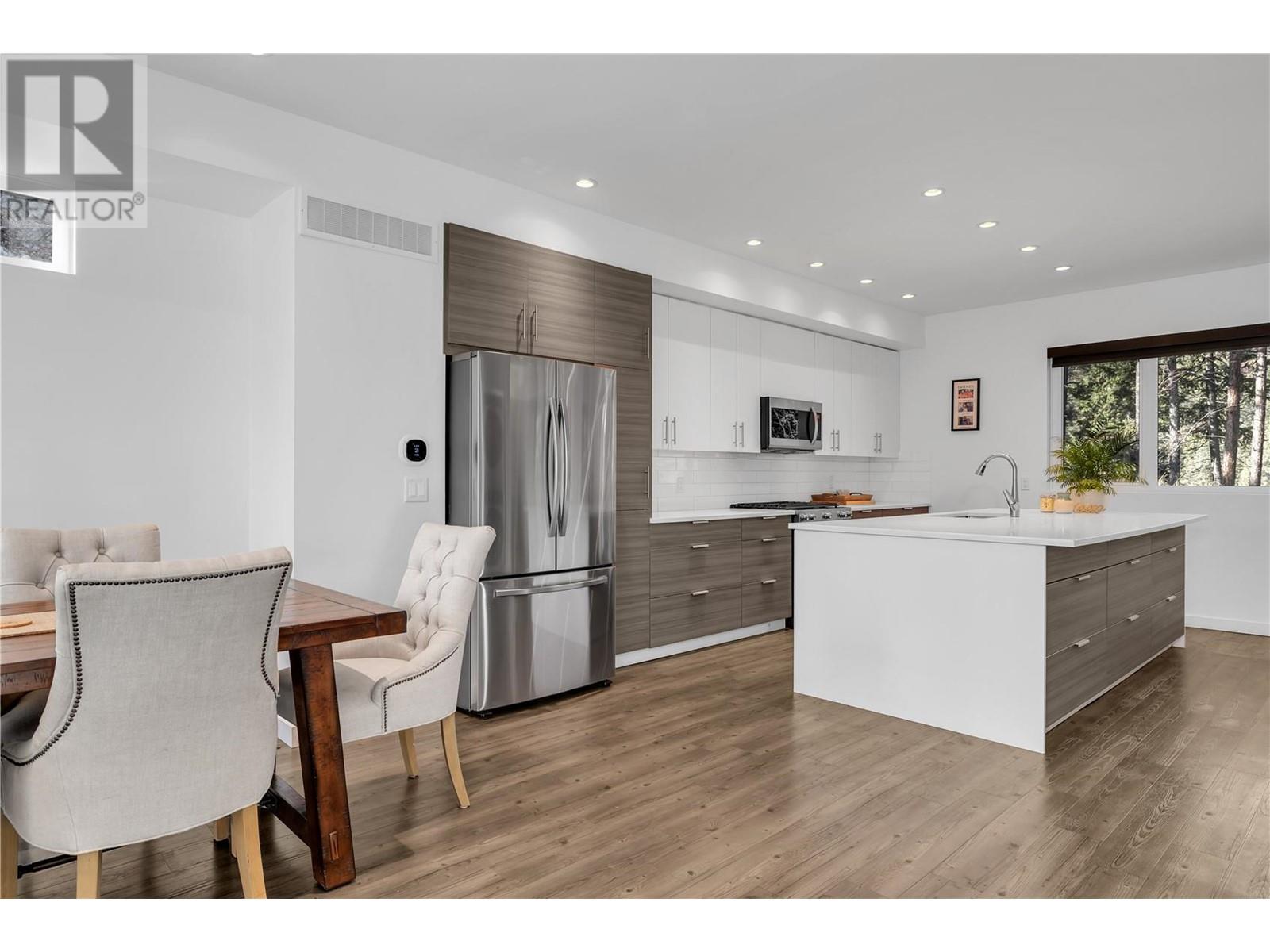Step into this captivating 3-bedroom, 3-bathroom multilevel home nestled within Lakeview Terrace, boasting stunning panoramic views of Okanagan Lake from its sprawling rooftop patio. Bathed in natural light from its large windows, this residence spans an impressive 1100 sqft of outdoor living space across three decks, offering an idyllic setting for entertaining and relaxation. The main floor welcomes you with an open concept layout encompassing the living and dining areas, complemented by a deck extending seamlessly from the living room. The kitchen, featuring an oversized island with quartz counters, updated appliances, and a gas range, embodies both style and functionality, enhanced by under-cabinet lighting. Ascending to the upper level, discover two bedrooms sharing a full bathroom. The master suite, adorned with vaulted ceilings and transom windows, boasts a walk-in closet, a luxurious ensuite with double sinks, a walk-in shower, and a private deck. The fully finished lower level is a versatile space, perfect for a home theatre, rec room, or man cave, offering flexibility for various lifestyle needs. A generously sized double garage with built-in shelving provides ample storage. (id:22211)