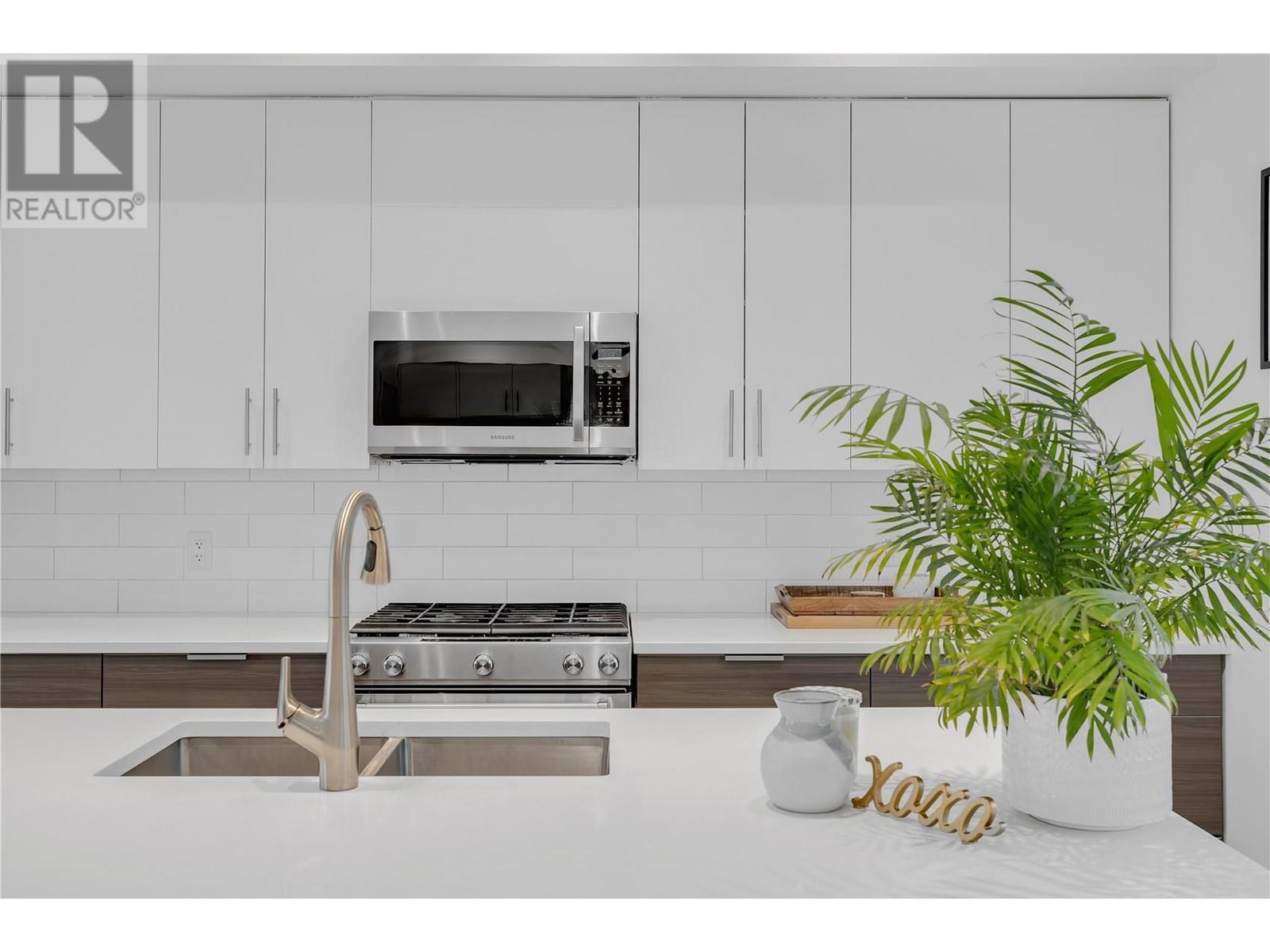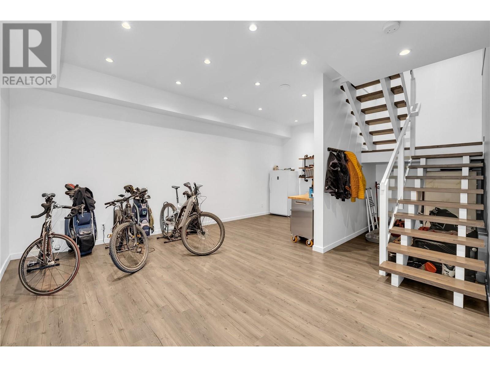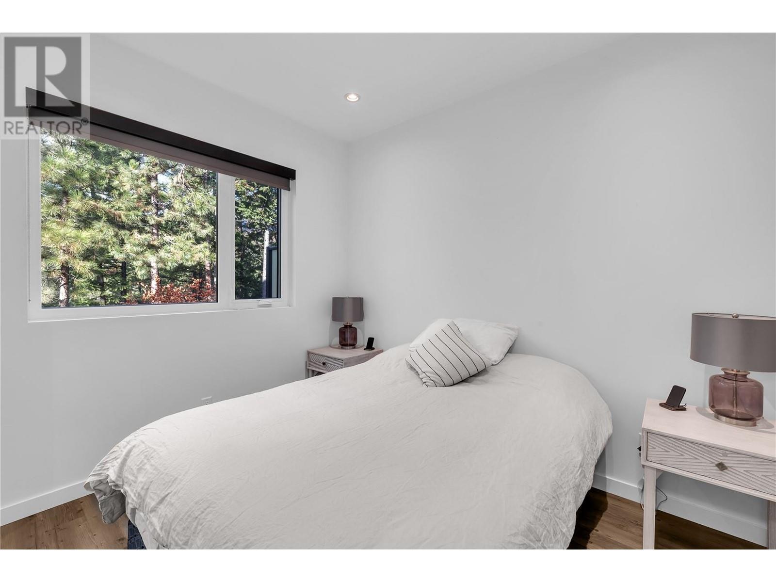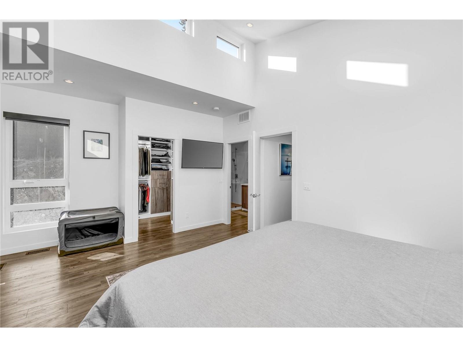 Step into this captivating 3-bedroom, 3-bathroom multilevel home nestled within Lakeview Terrace, boasting stunning panoramic views of Okanagan Lake from its sprawling rooftop patio. Bathed in natural light from its large windows, this residence spans an impressive 1100 sqft of outdoor living space across three decks, offering an idyllic setting for entertaining and relaxation. The main floor welcomes you with an open concept layout encompassing the living and dining areas, complemented by a deck extending seamlessly from the living room. The kitchen, featuring an oversized island with quartz counters, updated appliances, and a gas range, embodies both style and functionality, enhanced by under-cabinet lighting. Ascending to the upper level, discover two bedrooms sharing a full bathroom. The master suite, adorned with vaulted ceilings and transom windows, boasts a walk-in closet, a luxurious ensuite with double sinks, a walk-in shower, and a private deck. The fully finished lower level is a versatile space, perfect for a home theatre, rec room, or man cave, offering flexibility for various lifestyle needs. A generously sized double garage with built-in shelving provides ample storage. (id:22211)