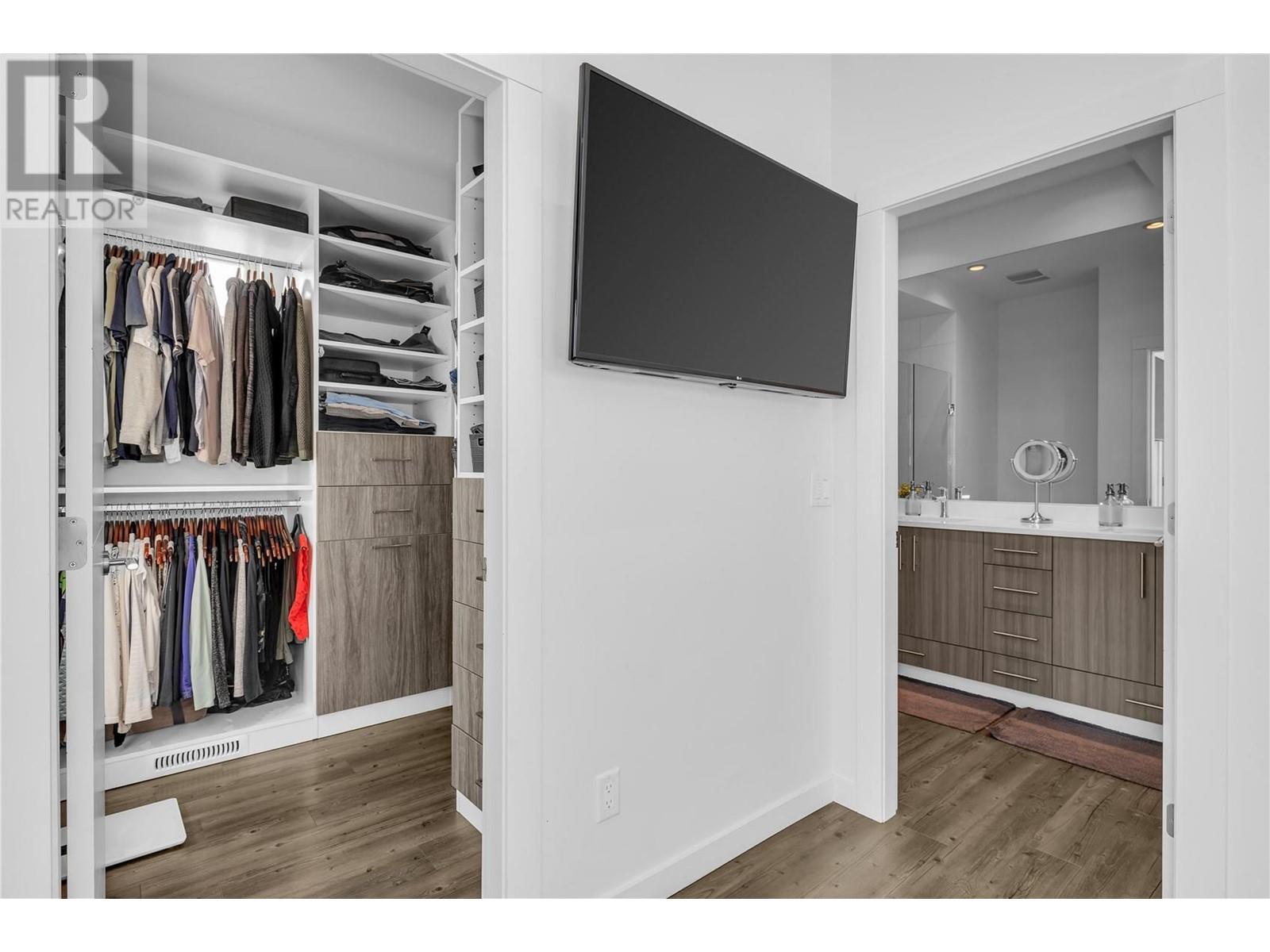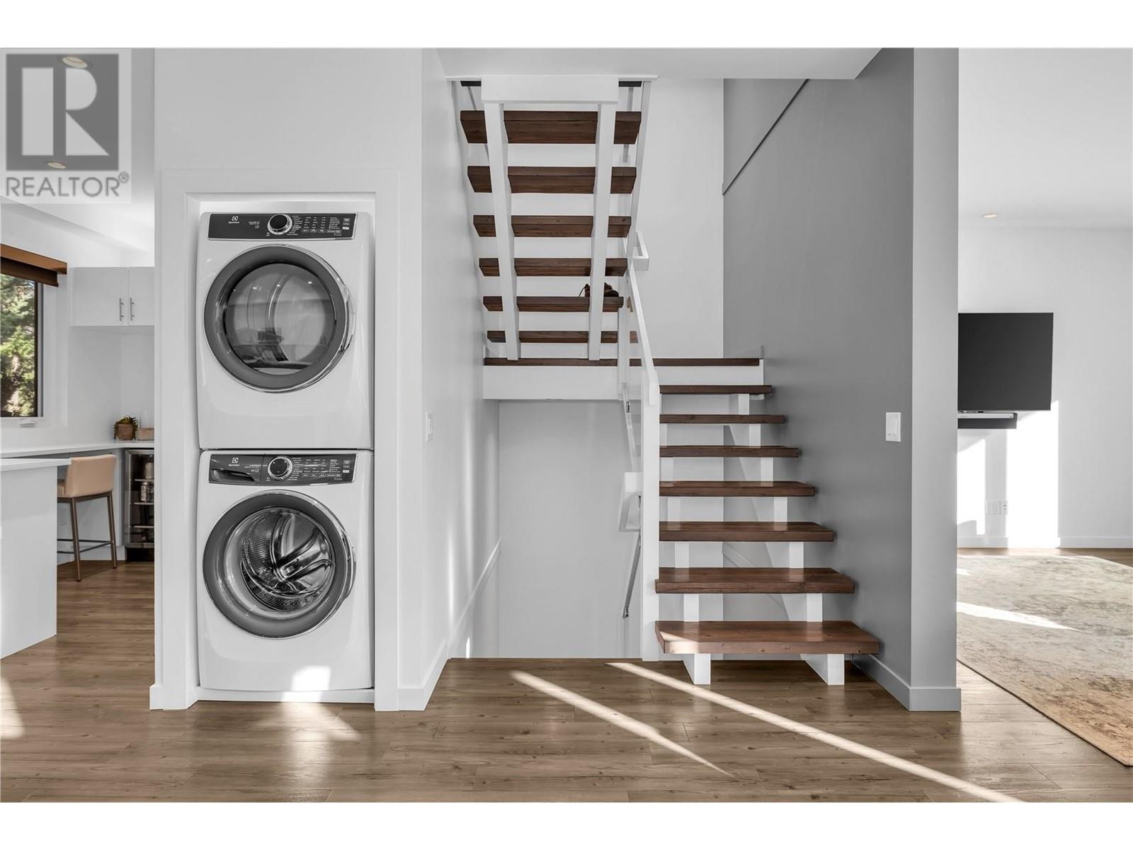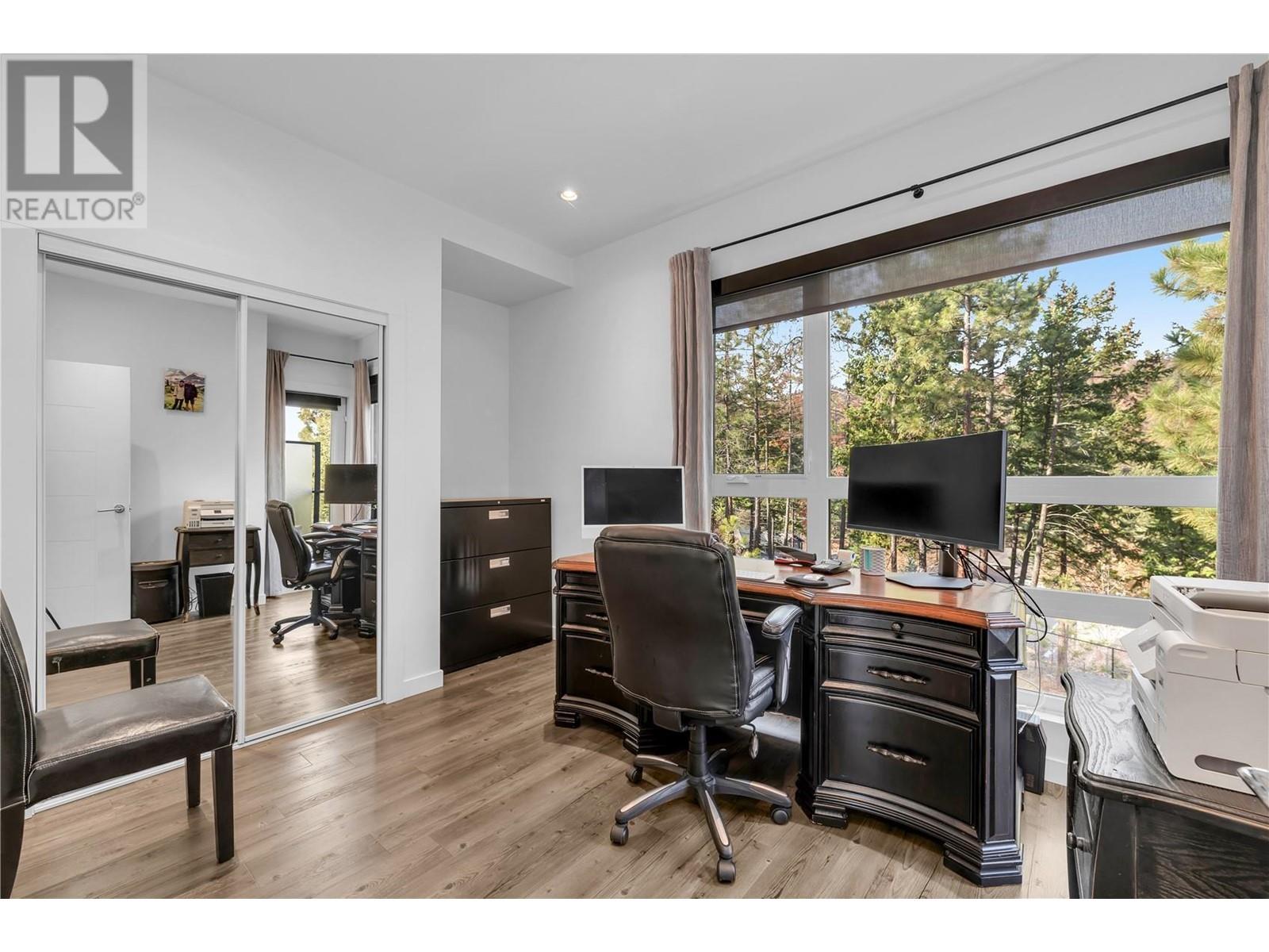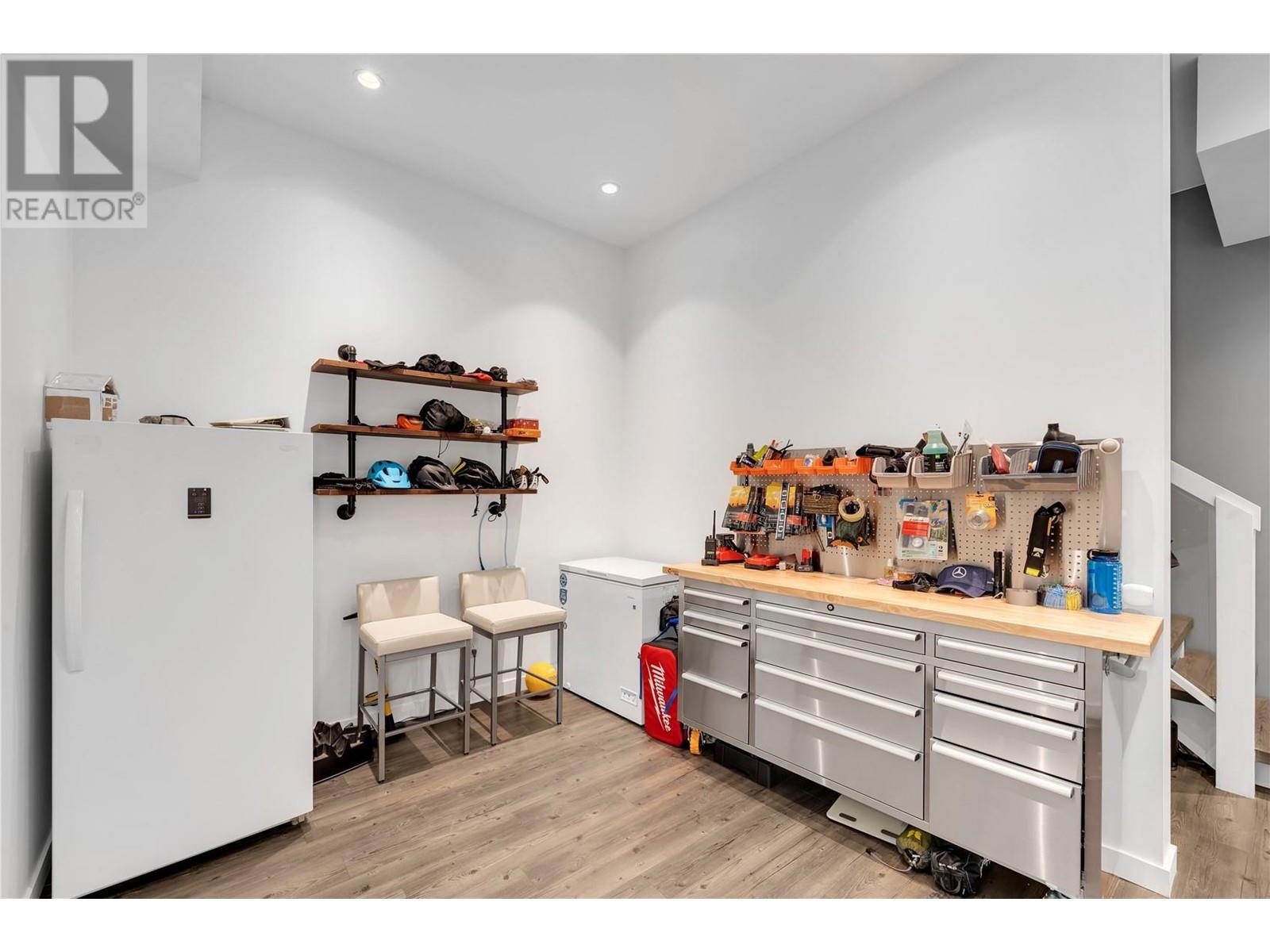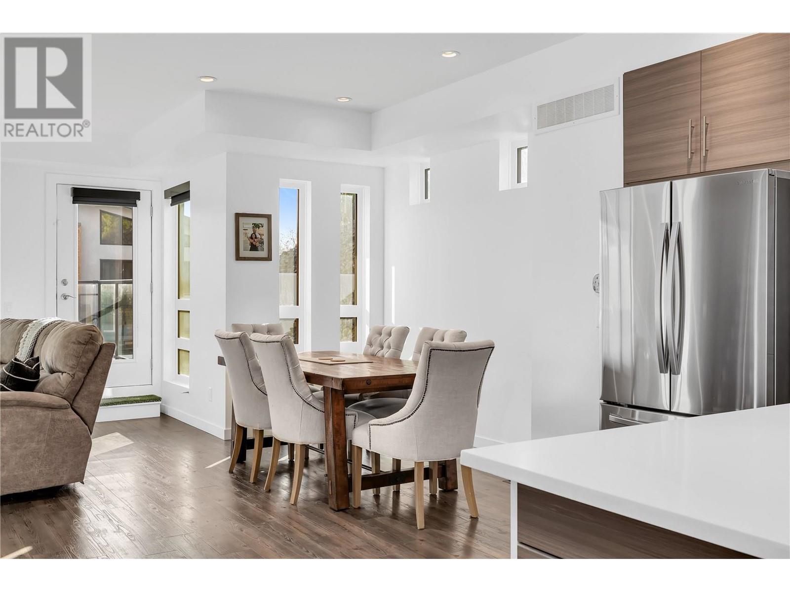 Step into this captivating 3-bedroom, 3-bathroom multilevel home nestled within Lakeview Terrace, boasting stunning panoramic views of Okanagan Lake from its sprawling rooftop patio. Bathed in natural light from its large windows, this residence spans an impressive 1100 sqft of outdoor living space across three decks, offering an idyllic setting for entertaining and relaxation. The main floor welcomes you with an open concept layout encompassing the living and dining areas, complemented by a deck extending seamlessly from the living room. The kitchen, featuring an oversized island with quartz counters, updated appliances, and a gas range, embodies both style and functionality, enhanced by under-cabinet lighting. Ascending to the upper level, discover two bedrooms sharing a full bathroom. The master suite, adorned with vaulted ceilings and transom windows, boasts a walk-in closet, a luxurious ensuite with double sinks, a walk-in shower, and a private deck. The fully finished lower level is a versatile space, perfect for a home theatre, rec room, or man cave, offering flexibility for various lifestyle needs. A generously sized double garage with built-in shelving provides ample storage. (id:22211)