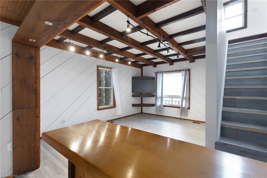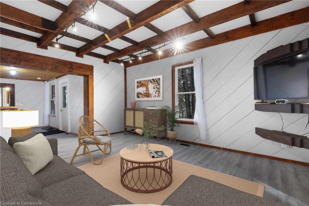 Welcome to 1048 Windham Centre Road, where modern updates meet country charm in the quiet, sought-after community of Windham Centre. This beautifully updated 2-storey home offers the perfect blend of comfort, style, and peaceful living with 2 bedrooms, 1 bathroom, and over 1,575 square feet of finished space. From the moment you arrive, you’ll appreciate the character and curb appeal—complete with a large covered front porch, ideal for your morning coffee or relaxing with a book. Inside, the home shines with fresh paint, luxury vinyl plank flooring on both levels, and warm wood trim accents that create a cozy and inviting atmosphere throughout. The main floor features a functional layout with an open-concept living area, updated eat-in kitchen, and a comfortable family room with a charming gas fireplace—the perfect spot to unwind. A generously sized main floor bedroom offers flexibility for guests, family, or even a home office. Upstairs, the second level has been transformed into a spacious and versatile primary suite. With room for a sleeping area, lounge space, or even a home office setup, this upper retreat gives you the flexibility to design the lifestyle that suits your needs. Step outside to your private, tree-lined backyard, backing onto open farmland—ideal for relaxing evenings or summer BBQs on the expansive back deck. The detached garage with hydro and a concrete floor is perfect for storage, a hobby space, or workshop. Additional features include natural gas heating, a drilled well, and a septic system. With ample parking for up to 8+ vehicles, this property is ready for both everyday living and entertaining. Located just a short drive from Simcoe, Delhi, and surrounding Norfolk County communities, you’ll enjoy the quiet of rural living with amenities close by. Don’t miss your opportunity to own this move-in-ready gem! Book your private showing today and experience everything 1048 Windham Centre Road has to offer!